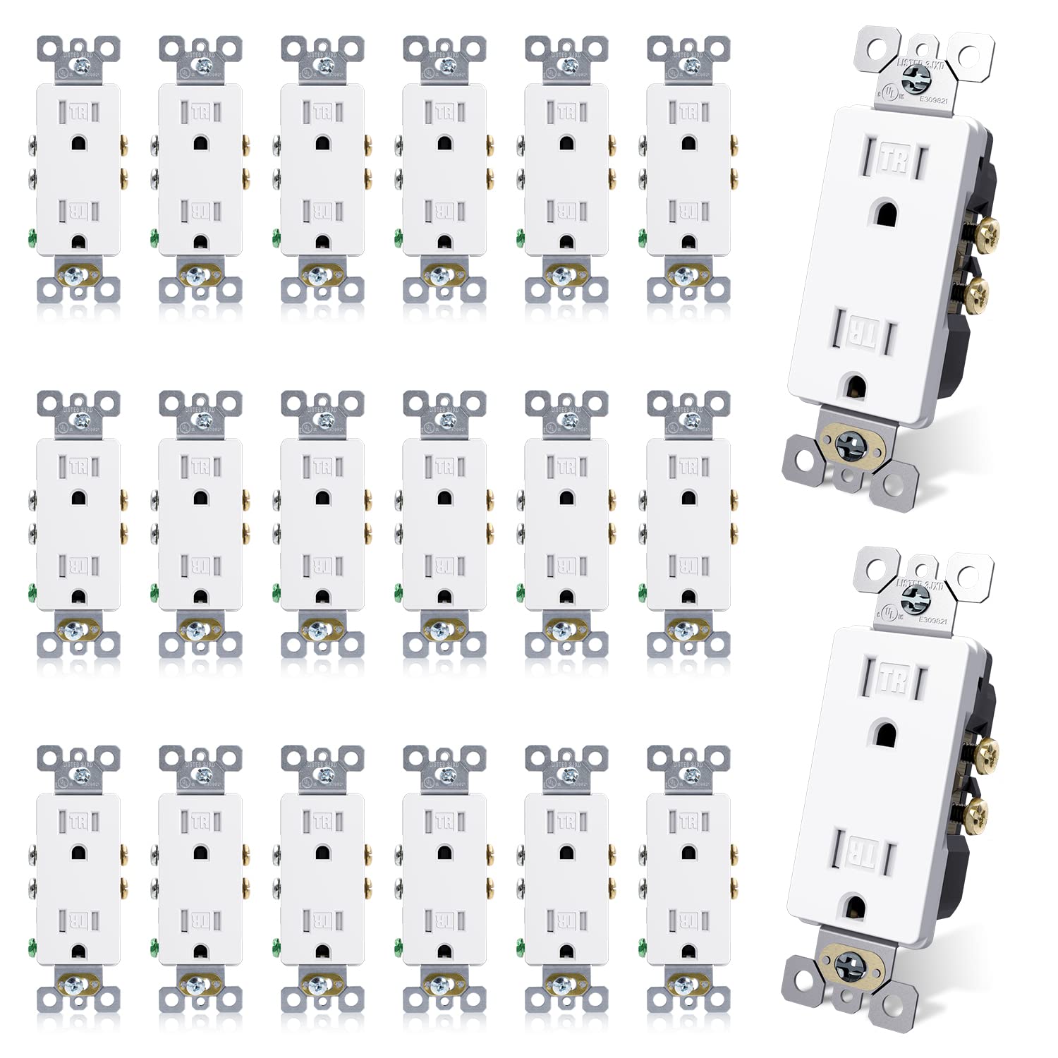 ELEGRP 15 Amp Tamper Resistant White Electrical Wall Outlet, 125V, UL Listed, 20 Pack