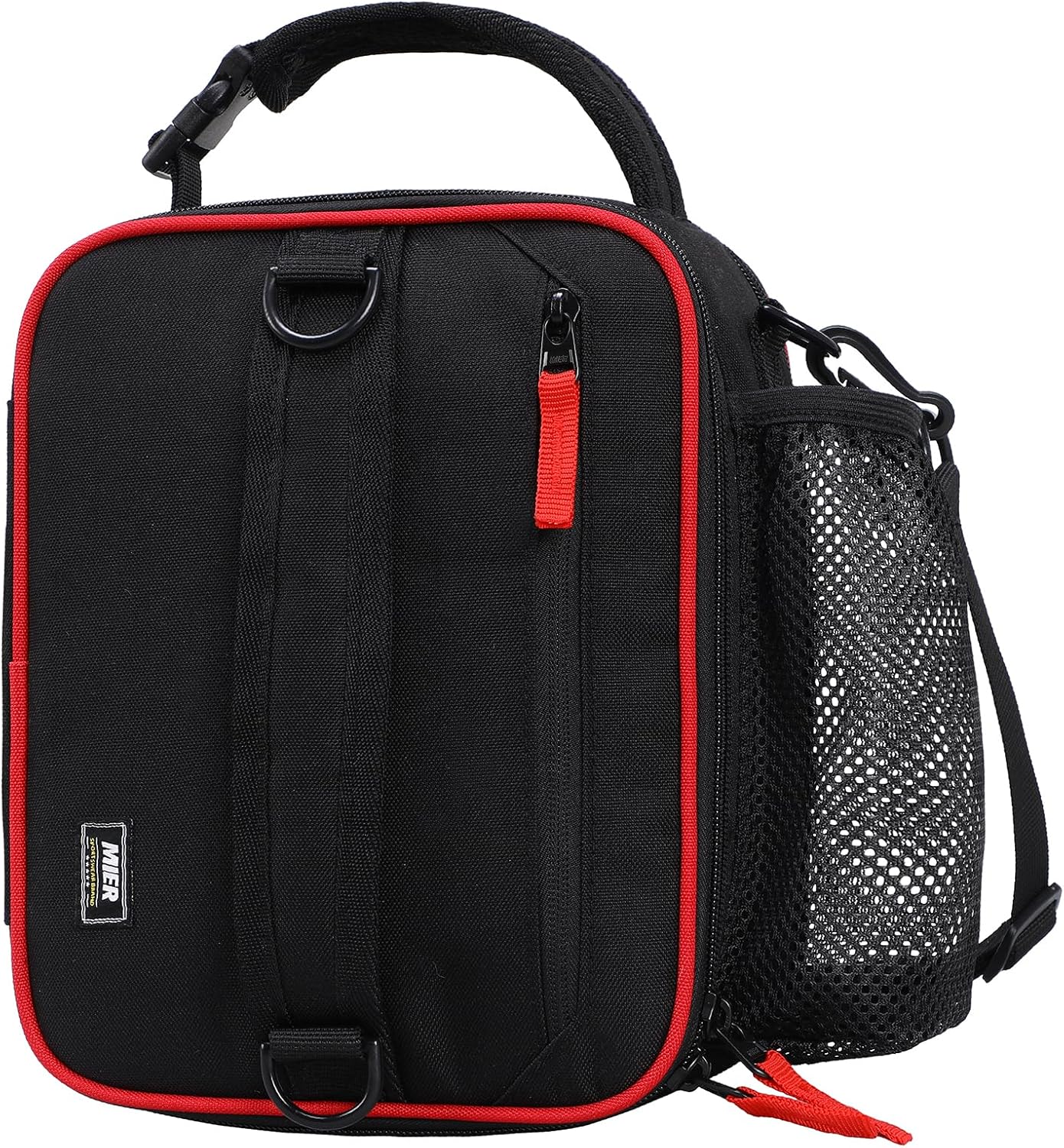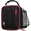 MIER Expandable Lunch Bag Insulated Lunch Box for Men to Work Travel Portable Lunchbox Bags with Shoulder Strap and Water Bottle Holder(Black/Red)