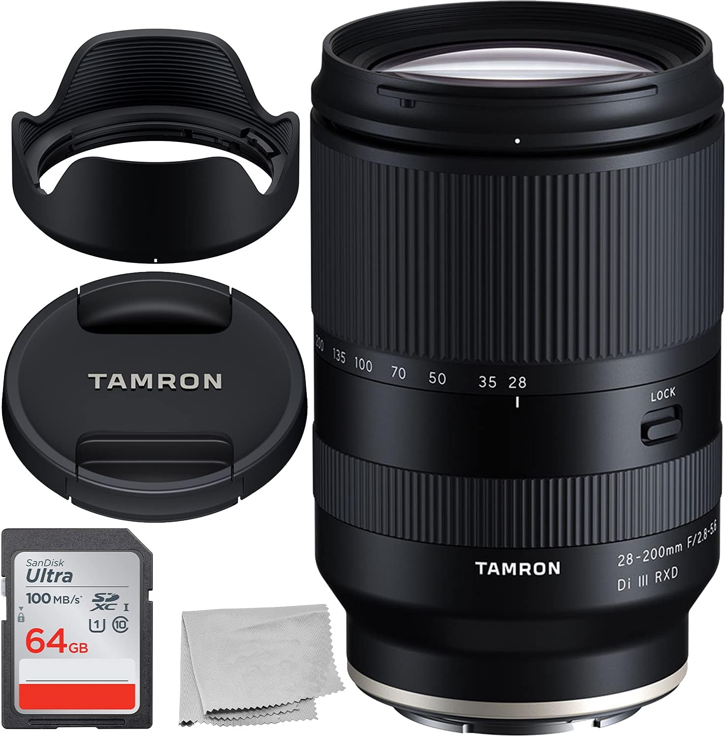 Tamron 28-200mm f/2.8-5.6 Di III RXD Lens for Sony E with Basic Accessory Bundle - Includes: SD Ultra 64GB Memory Card, Manufacturer’s Accessories & Microfiber Cloth, TA28200E128
