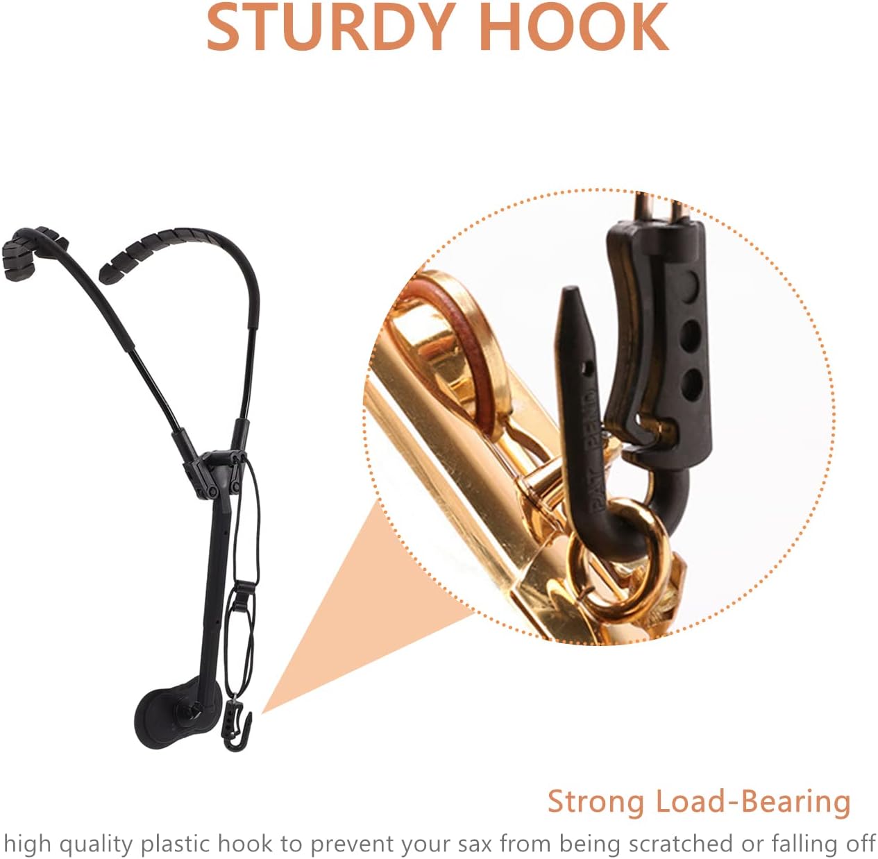 Proteja su saxofón: utiliza ganchos de tipo hebilla y ganchos de metal, que son duraderos, con gran capacidad de carga, y protege eficazmente el instrumento de caerse y dañarse. Poshbktn