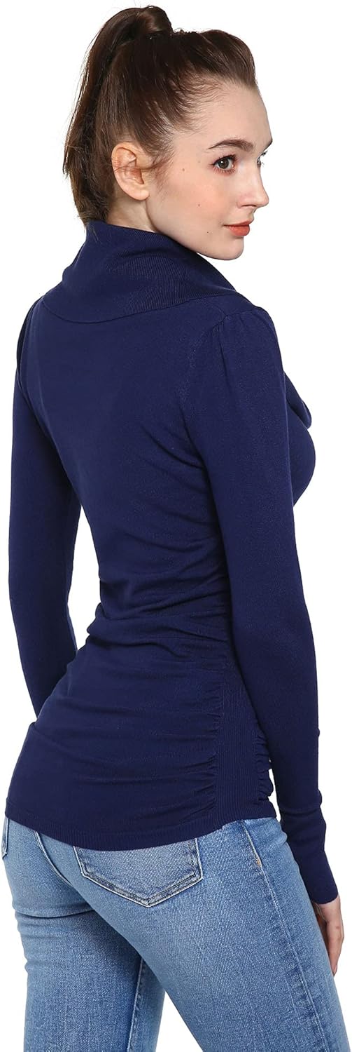 AmélieBoutik Women Casual Slim Fit Cowl Neck Long Sleeve Ruched Sides Pullover Tunic Sweater
