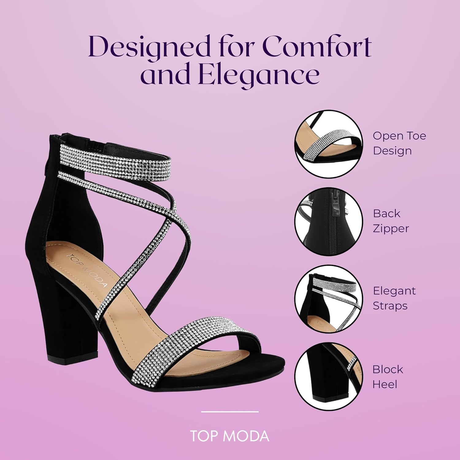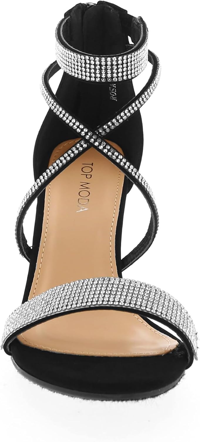TOP Moda Rosa-66 Ankle Strap Dressy High Heel Sandal, Non-slip Sole, For Wedding, Party, Prom, Evening Wear, or Any Occasion, Sleek Style Block Heel Sandals