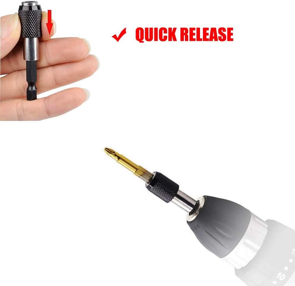 ✮ [FUERZA MAGNÉTICA FUERTE-3PCS SOPORTE DE BROA]- 3 soportes magnéticos de extensión de broca de liberación rápida tienen adaptador de conductor de 1/4" y vástago hexagonal de 1/4"; El paquete incluye 3 longitudes - 2" (60mm), 4" (100mm), 6" (150mm) para satisfacer sus diversas necesidades. El mecanismo de bloqueo y el fuerte magnetismo incorporado facilitan la apertura automática de la cabeza de lote, garantizando una liberación rápida y rápida.