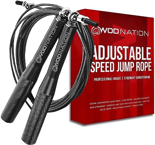 WOD Nation Alluminum Handle High Speed Adjustable Jump Rope for Women and Men Perfect Skipping Rope for Boxing, Fitness, Workout