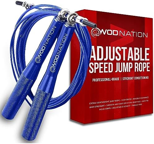 WOD Nation Adjustable Jump Rope - Blue, 10 ft Adjustable Length - High-Speed Cable Skipping Rope with Smooth 360° Rotation - Aluminum Grip Handles for Boxing & HIIT Fitness