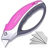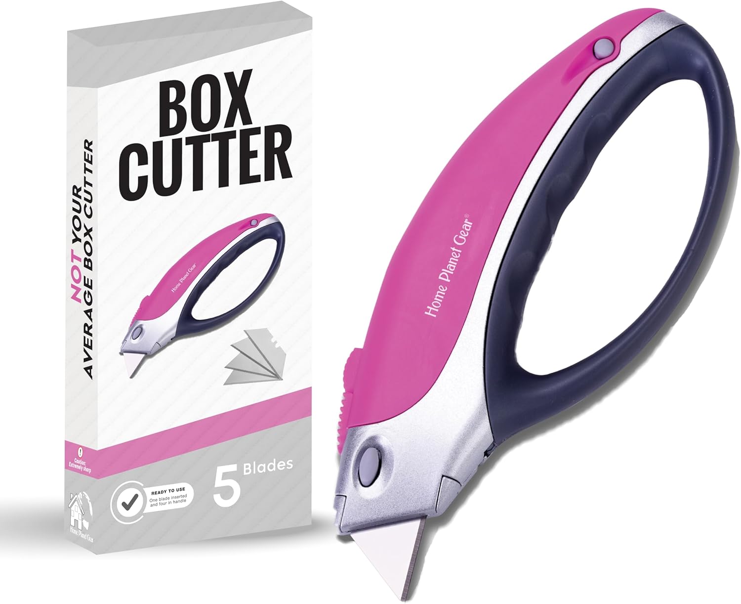 Pink Box Cutter Retractable Utility Knife - Heavy Duty Box Cutter Knife Cardboard Cutter - Box Opener Razor Blades Knife with 5 Sharp Utility Blades