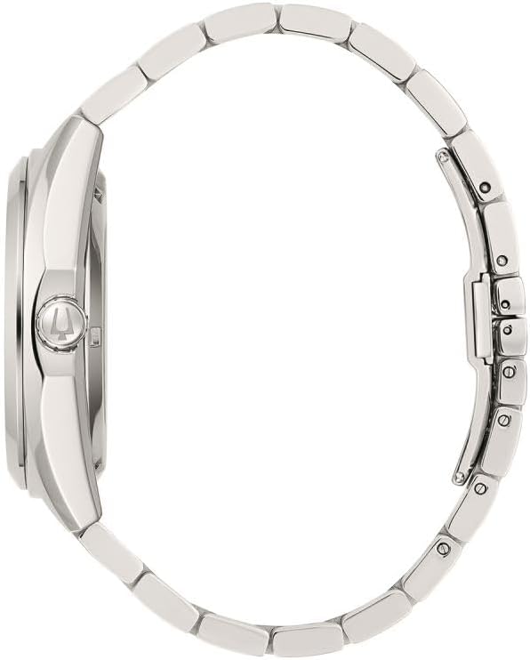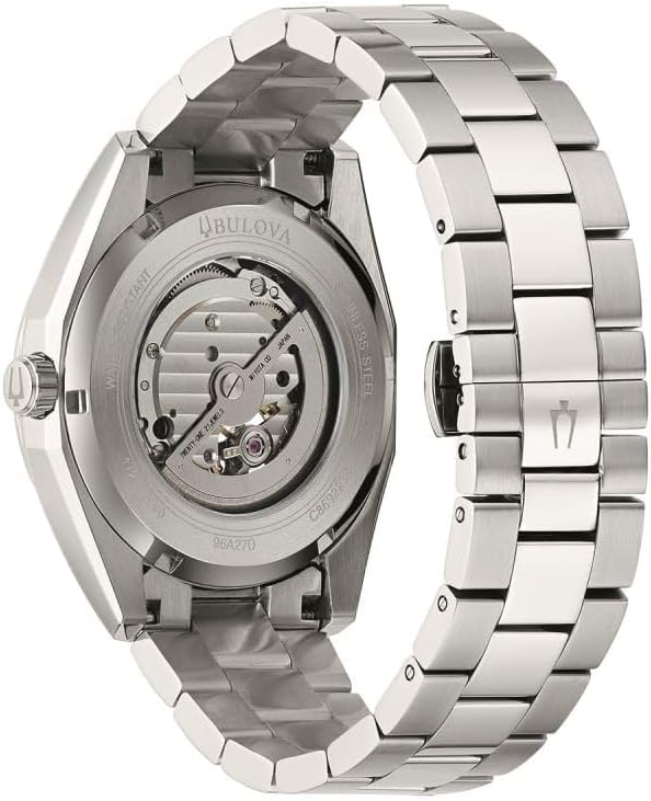 Parte de la línea Surveyor de relojes Bulova, este reloj automático clásico actualizado ofrece todos los detalles y la alta calidad que esperarías en un reloj de lujo, a un precio accesible. La caja y la correa de acero inoxidable de tono plateado van combinadas con una esfera negra rica con acentos de tono plateado y una abertura abierta para ver el volante y el escape del movimiento. La caja con cierre roscado está cubierta con una ventana de exhibición de cristal mineral para mostrar el movimiento automático que impulsa el reloj. Este reloj de calidad y hermosos detalles está destinado a convertirse en un nuevo favorito en cualquier colección.