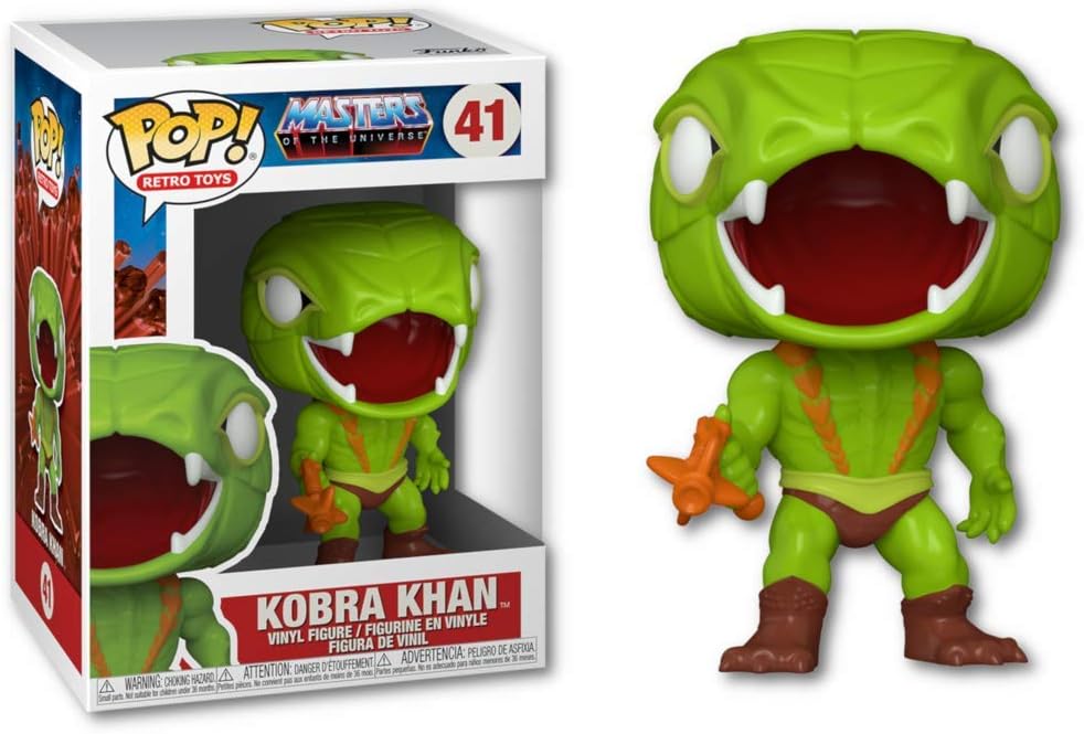From Retro Toys Masters of The Universe, Kobra Khan, as a stylized Pop! from Funko! Figure stands 3 3/4 inches and comes in a window display box. Collect the entire line of Masters of the Universe Heroic Warriors Funko Pop! Vinyl's: He-man, Man At Arms, Teela, Stratos, Man-E-Faces, Orko, Battle Armor He-man, Moss Man, Ram man, Zodak, Buzz Off, Prince Adam, Mekaneck, She-Ra, Adora, Bow, Roboto, Fisto, Sorceress, Clamp Champ, Sy Klone & King Randor. Collect the entire line of Masters of the Universe Evil Warriors Funko Pop! Vinyl's: Skeletor, Beast Man, Merman, Evil Lyn, Trap Jaw, Tri-Klops, Battle Armor Skeletor, Clawful, Whiplash, Webster, Kobra Kahn, Spikor, Faker, Stinkor, Two Bad, Jitsu, Panthor, Night Stalker, Ninjor, Scareglow & Snake Mountain. Collect the entire line of Masters of the Universe Evil Horde Funko Pop! Vinyl's: Hordak, Grizzlor, Leech, Mantenna, Mosquitor, Scorpia, Horde Trooper, Dragstor & Shadow Weaver. Collect the entire line of Masters of the Universe Snake Men Funko Pop! Vinyl's: King Hiss, Tung Lashor, Rattlor, Snake Face & Blast Attak. Collect the entire line of Teenage Mutant Ninja Turtles Funko Pop! Vinyl's: Leonardo, Raphael, Donatello, Michelangelo, Splinter, Shredder, April O'Neil, Casey Jones, Leatherhead, Bebop, Rocksteady & Foot Soldier. Collect the entire line of Teenage Mutant Ninja Turtles: Secret of The Ooze Funko Pop! Vinyl's: Leonardo, Raphael, Donatello, Michelangelo, Rahzar, Tokka, Super Shredder & Foot Soldier. (Each Sold Separately) Includes a Pop box protector fit for any collectors investment.