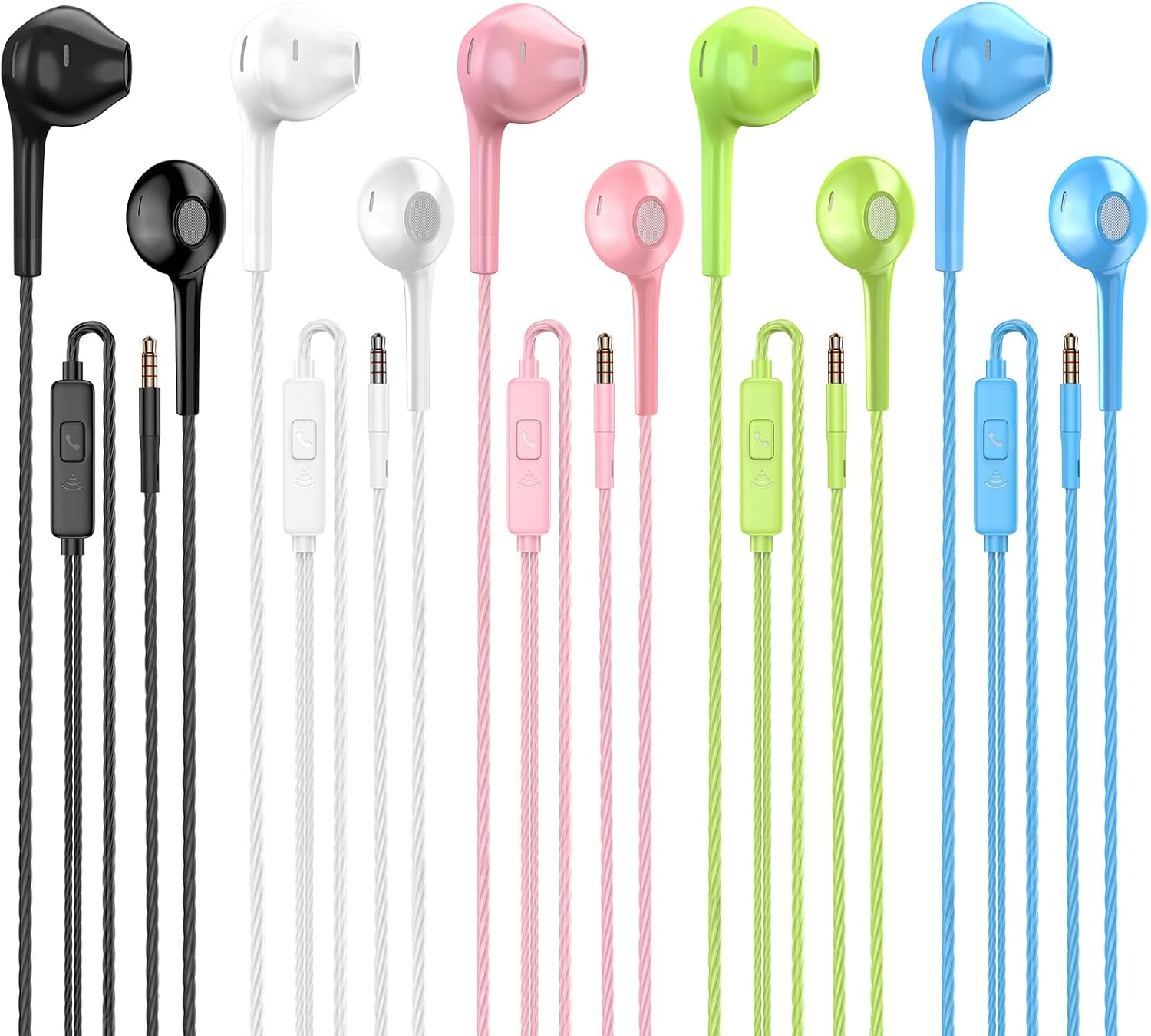 Auriculares con micrófono Pack de 5, Auriculares con aislamiento de ruido, Auriculares con potente bajo estéreo, Compatibles con Android, Teléfonos, Portátiles, MP3 y otras interfaces (3.5mm)