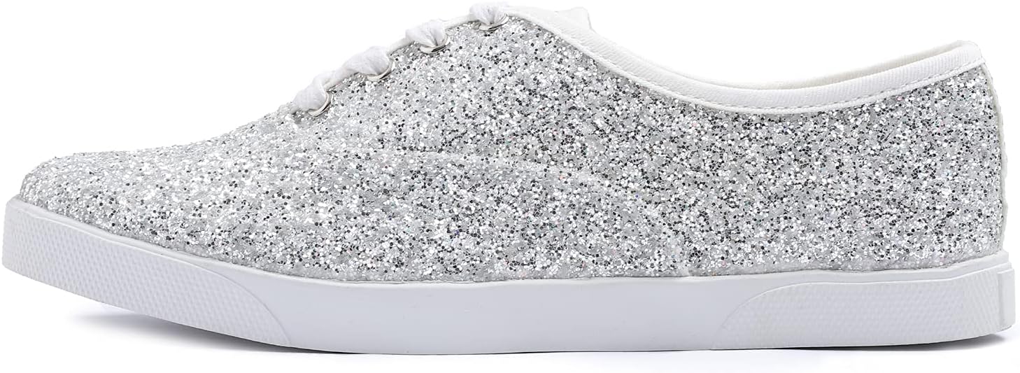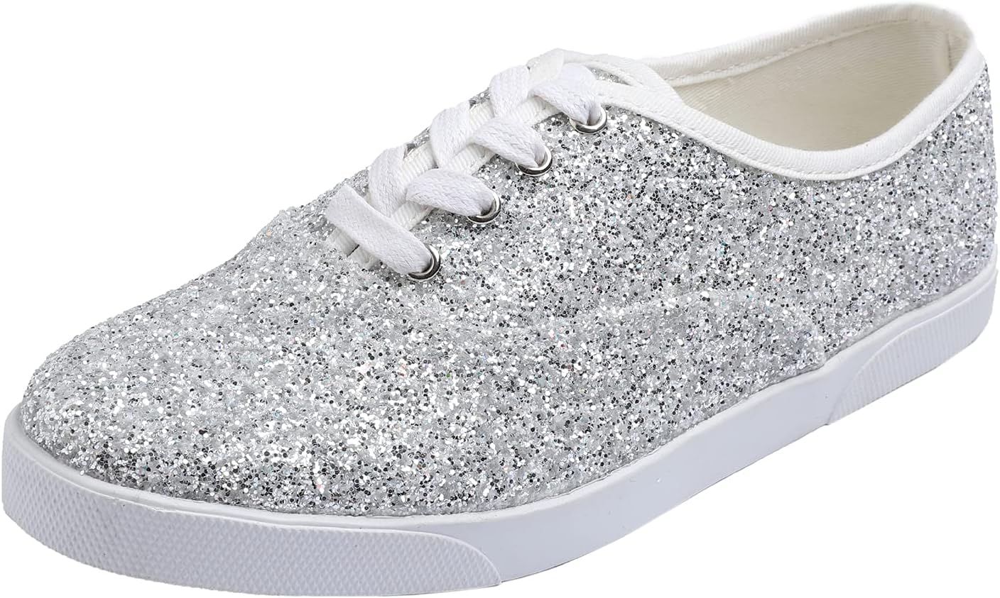 FEVERSOLE Women's Fashion Dress Sneakers Party Bling Casual Flats Embellished Shoes