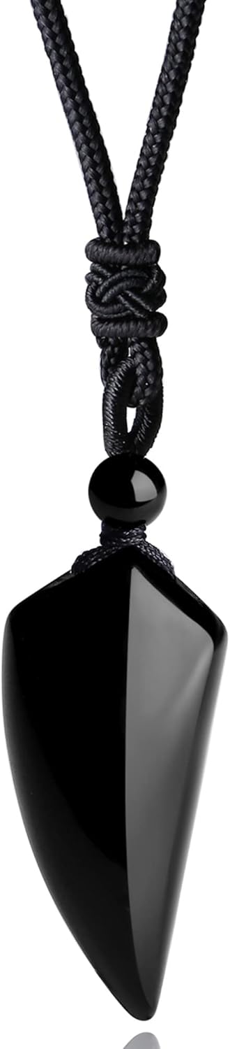 Collar Pendiente MAIBAOTA para Hombre Collar de Cuerda Ajustable con Piedra de Obsidiana Negra Collar de Cristal de Piedra para Joyería Masculina