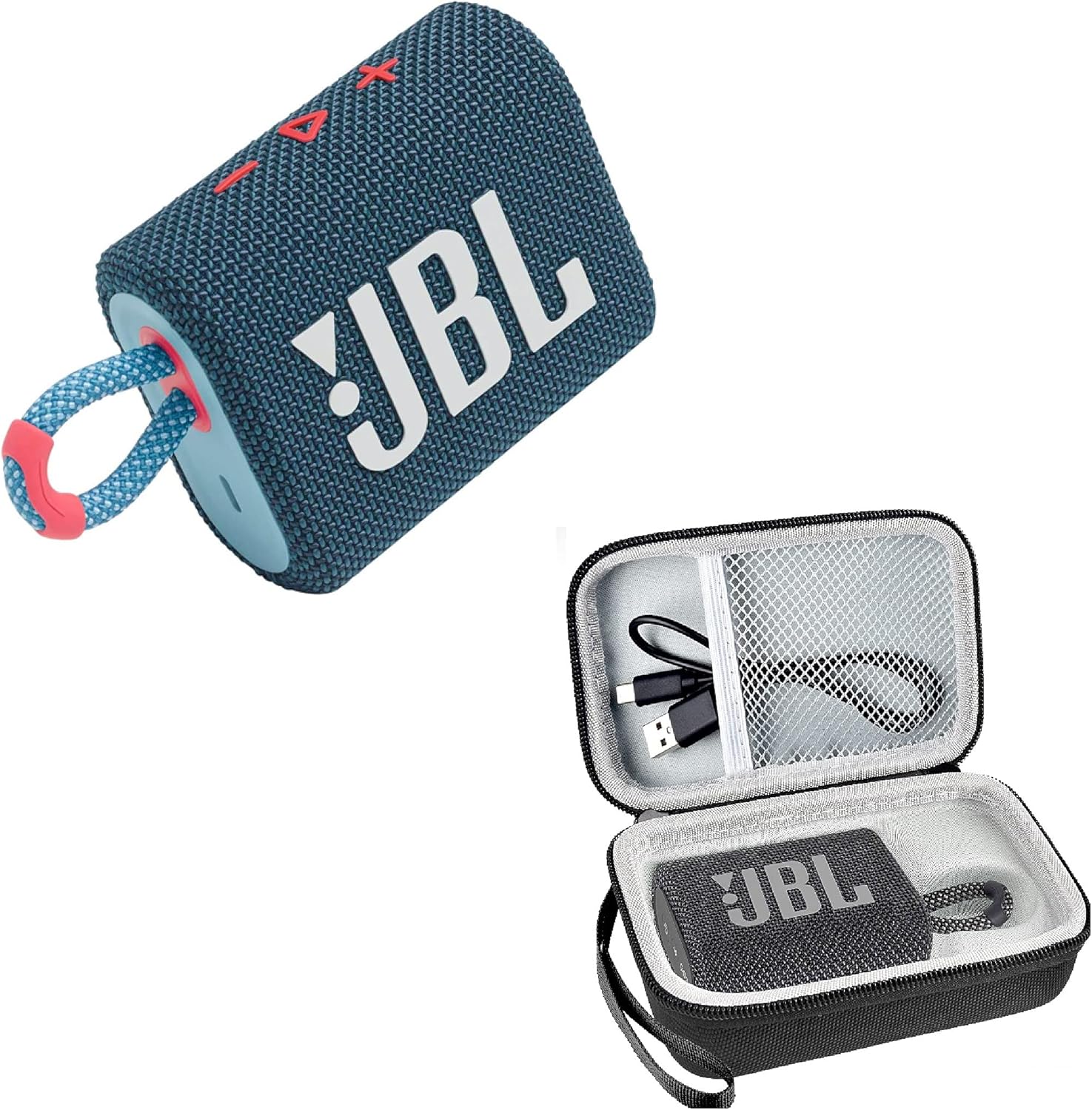 Paquete de altavoces Bluetooth inalámbricos portátiles JBL Go 3 a prueba de agua con funda de transporte de primera calidad (azul y rosa)