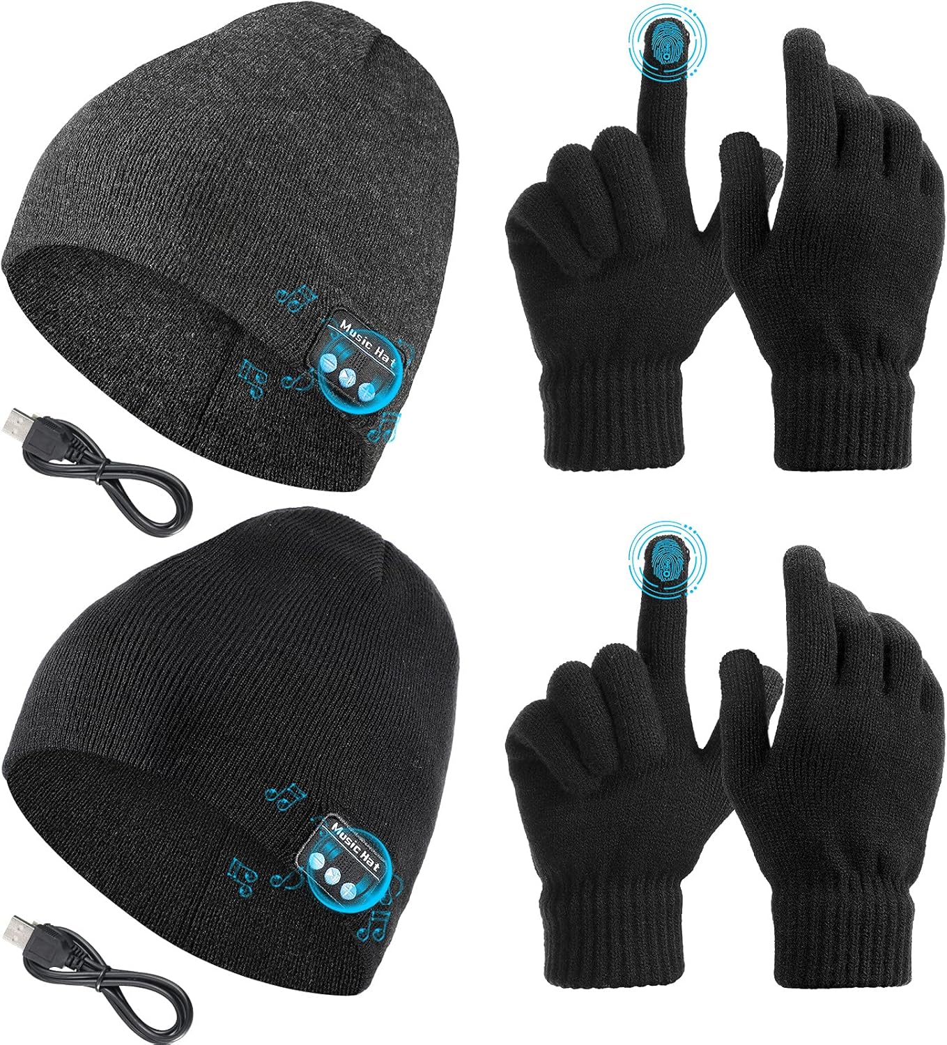 4 Pieces Bluetooth Beanie Hat for Men Winter Wireless Music LED Light Hat with Gloves for Men Women Sports Gifts