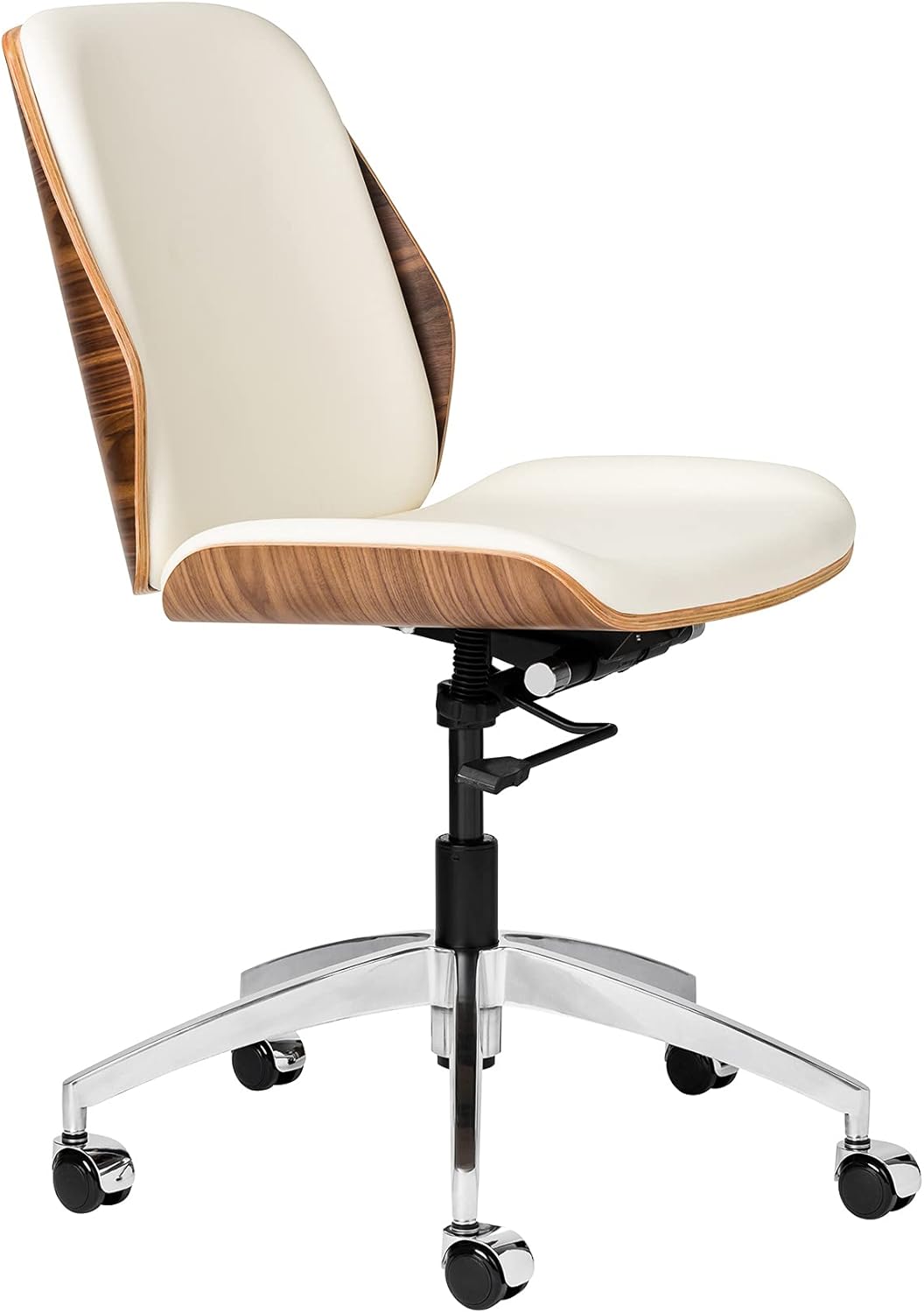 Laura Davidson Furniture Rockefeller Mid Century Modern Office Chair with Vegan Leather and Walnut Wood Veneer (White)