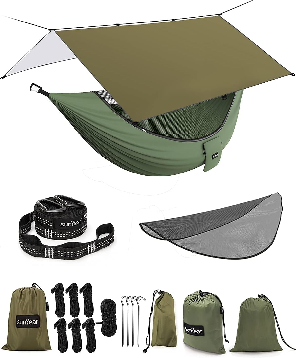 Sunyear Hammock Camping with Removable No See-Um Net and Rain Fly Tent Tarp with 32ft Long Ridgeline Against Storm, Snow,Best for Outdoor Backpacking Hiking&Survival