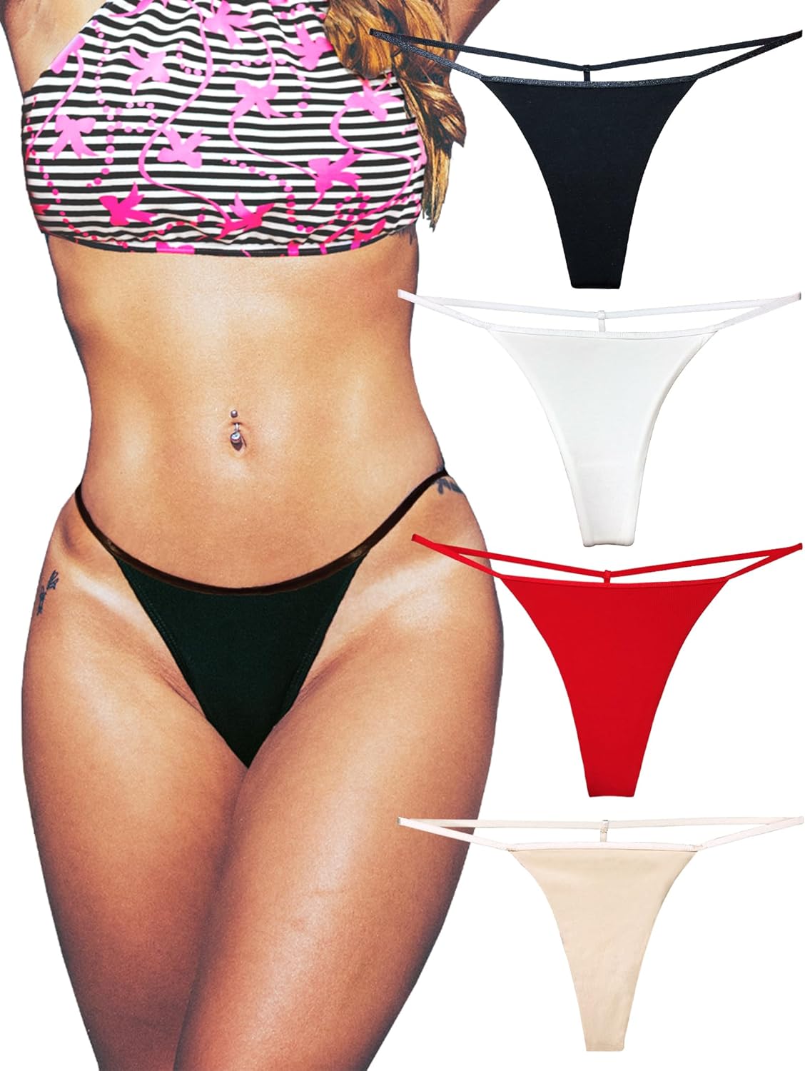 Tangas de Algodón sin Costuras para Mujeres T Back Gstring Underwear Panties Tangas Sexy 4 Paquete