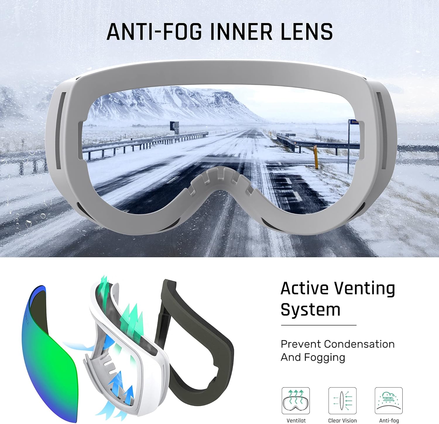 TOREGE Ski Goggles Anti Fog Dual-Layer UV Protection Snowboard Goggles OTG Snow Goggles for Men Women
