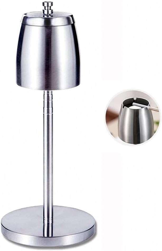 Stainless Steel Ashtrays with Lid Adjustable Floor Standing Home Ashtrays Indoor/Outdoor Windproof/Rainproof Smokeless Covered Ashtrays Suitable for Patio, Home & Office Decoration (Adjustable)