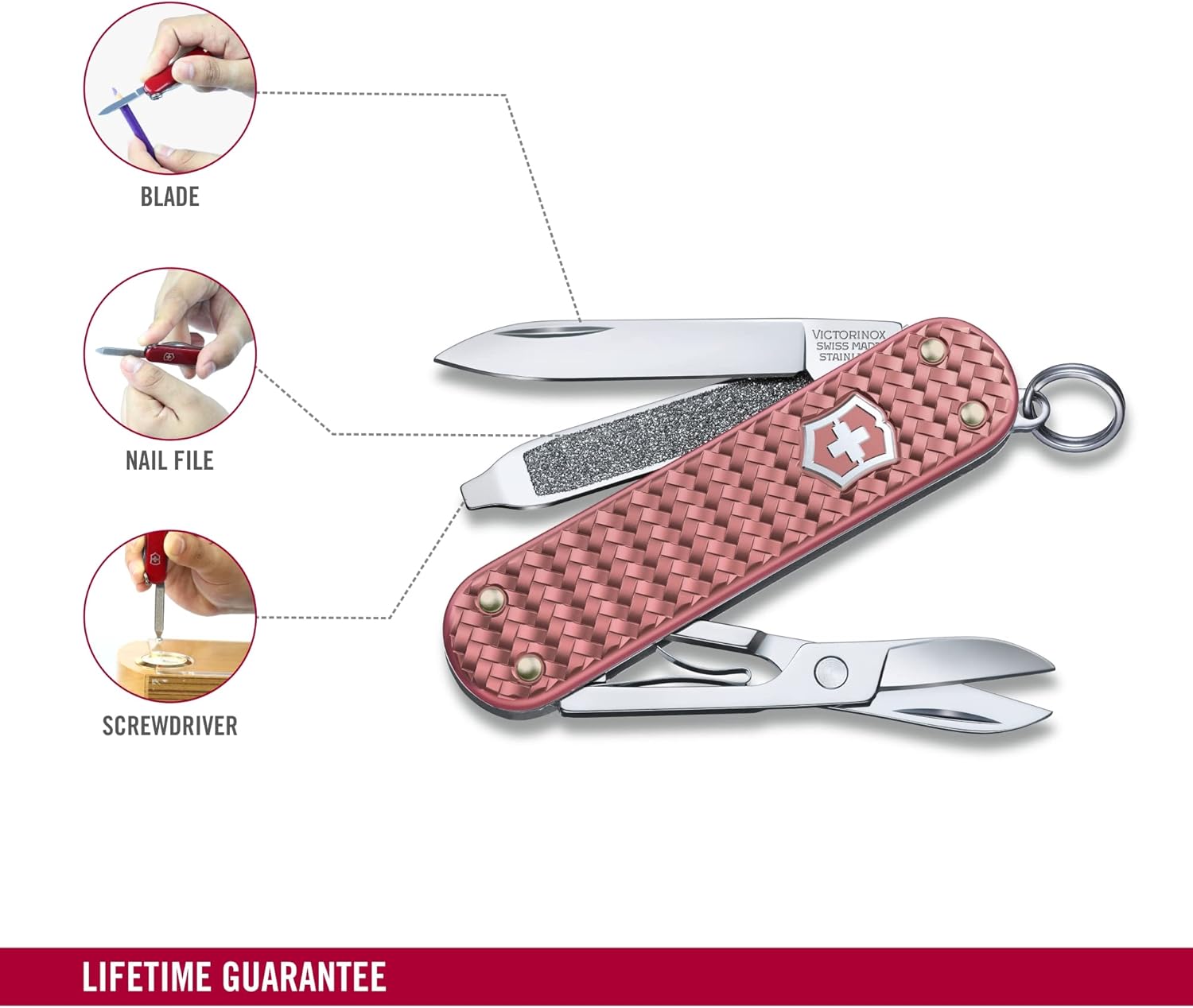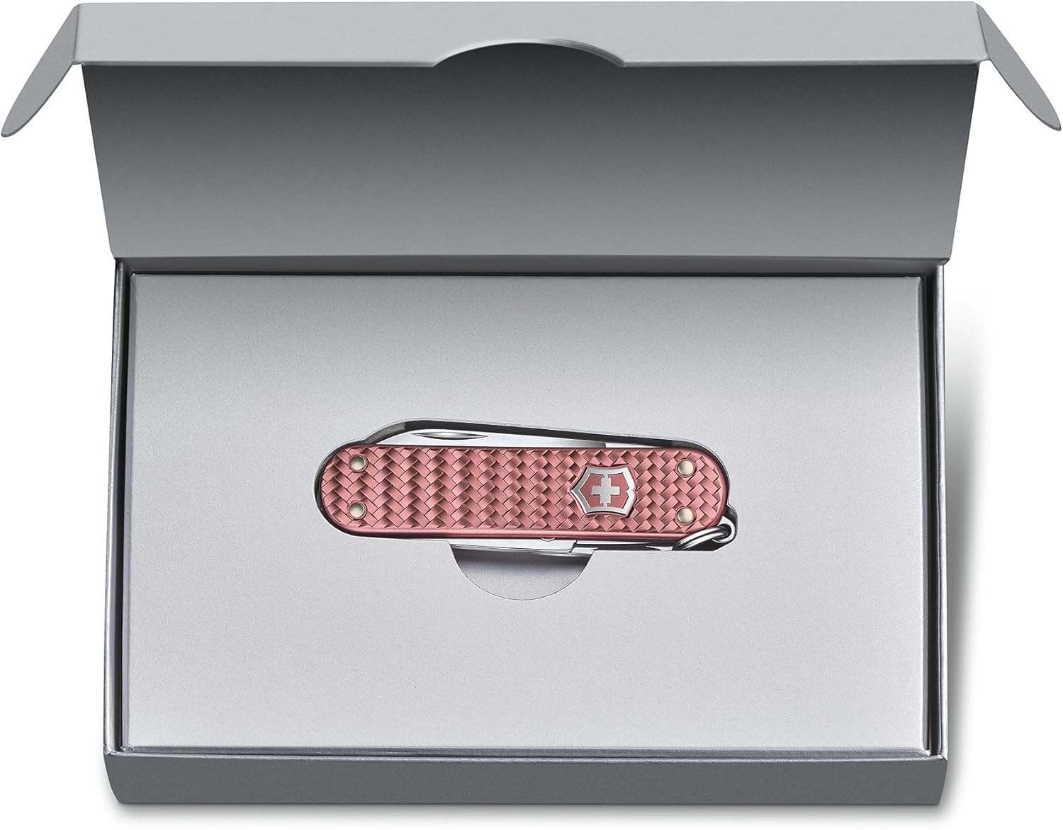 Victorinox Classic SD Precious Alox Navaja Suiza, Navaja de Bolsillo Compacta de 5 Funciones Hecha en Suiza con Puñal Pequeño, Destornillador y Llavero - Rosa Suave