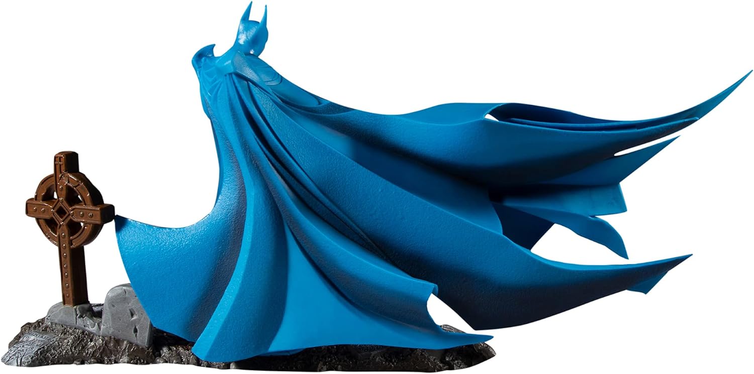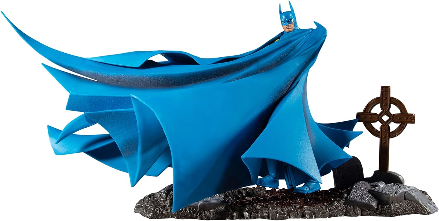 Batman incluye una gran capa estilizada, una capa de tela, un batarang y una base de cementerio