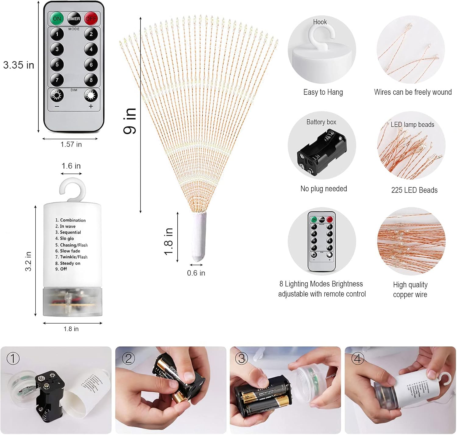 Copper light string requires 4 AA batteries (without batteries): The battery chandelier with hooks get rid of the socket control and can be installed in the living room, bedroom, corridor, courtyard, garden, bar, window, etc. It is very suitable for Christmas and birthday , Halloween, New Year and more