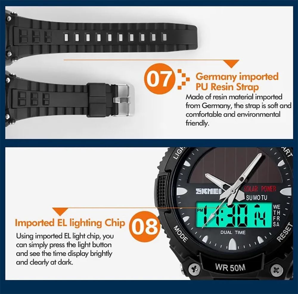Gosasa Military Watch for Men Solar LED Sports Waterproof Watch Fashion Men Watches Outdoor Sports Multi-Function Digital Display Camouflage Watch