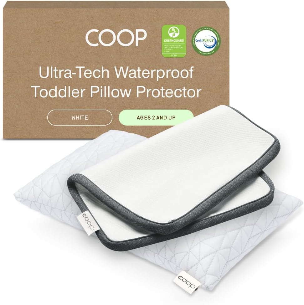 Coop Home Goods Original Adjustable Toddler Pillow and Ultra-Tech Waterproof Protector White Bundle, Breathable Mini Pillow for Kids with Adjustable Support and Premium Memory Foam