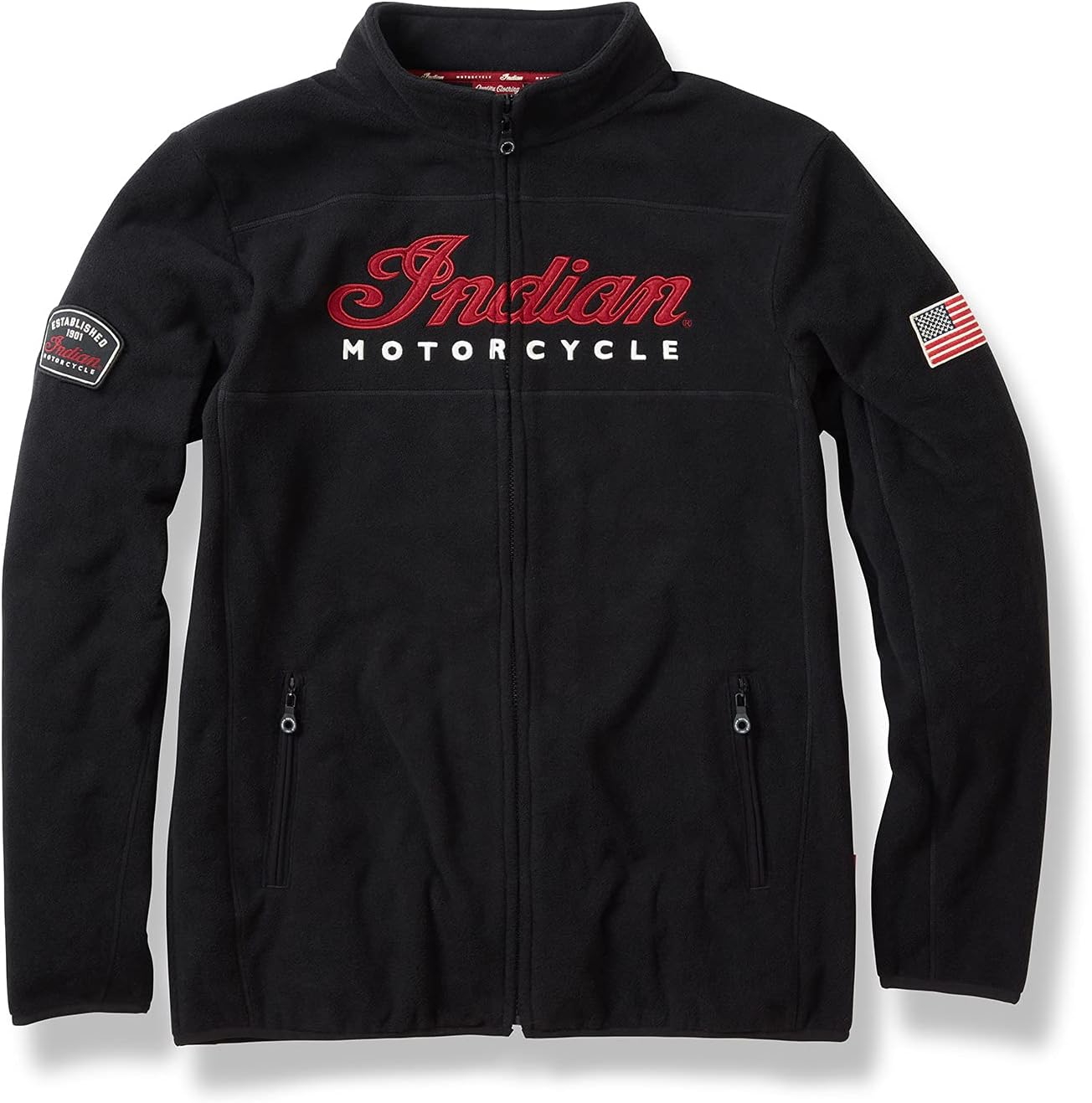 Indian Motorcycle Men's Full Zip Thru Fleece Sweatshirt, Black, Script Logos, Comfortable Fit - 2861644