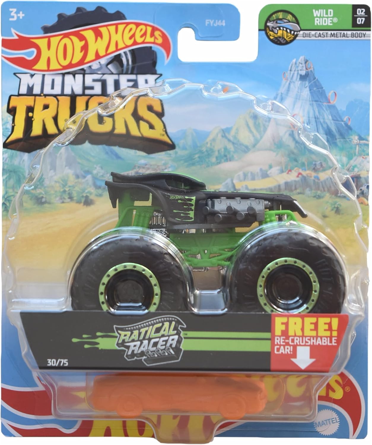 Hot Wheels Monster Trucks Ratical Racer, [Negro] Coche Reciclable 30/75 a escala 1:64