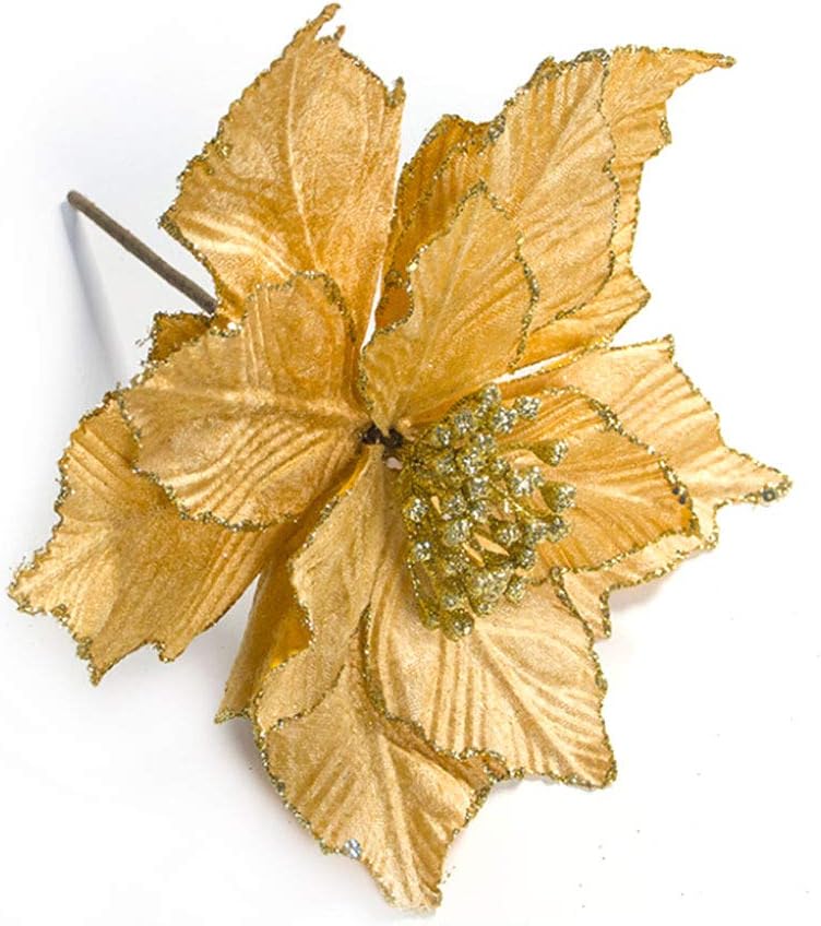 Glitter Christmas Poinsettia Flowers(6 Pack), 11 Wide Velvet Artificial Poinsettia Flower Picks Christmas Tree Ornaments, Artificial Flower Floral Picks for DIY Crafts Wreath Party Decor