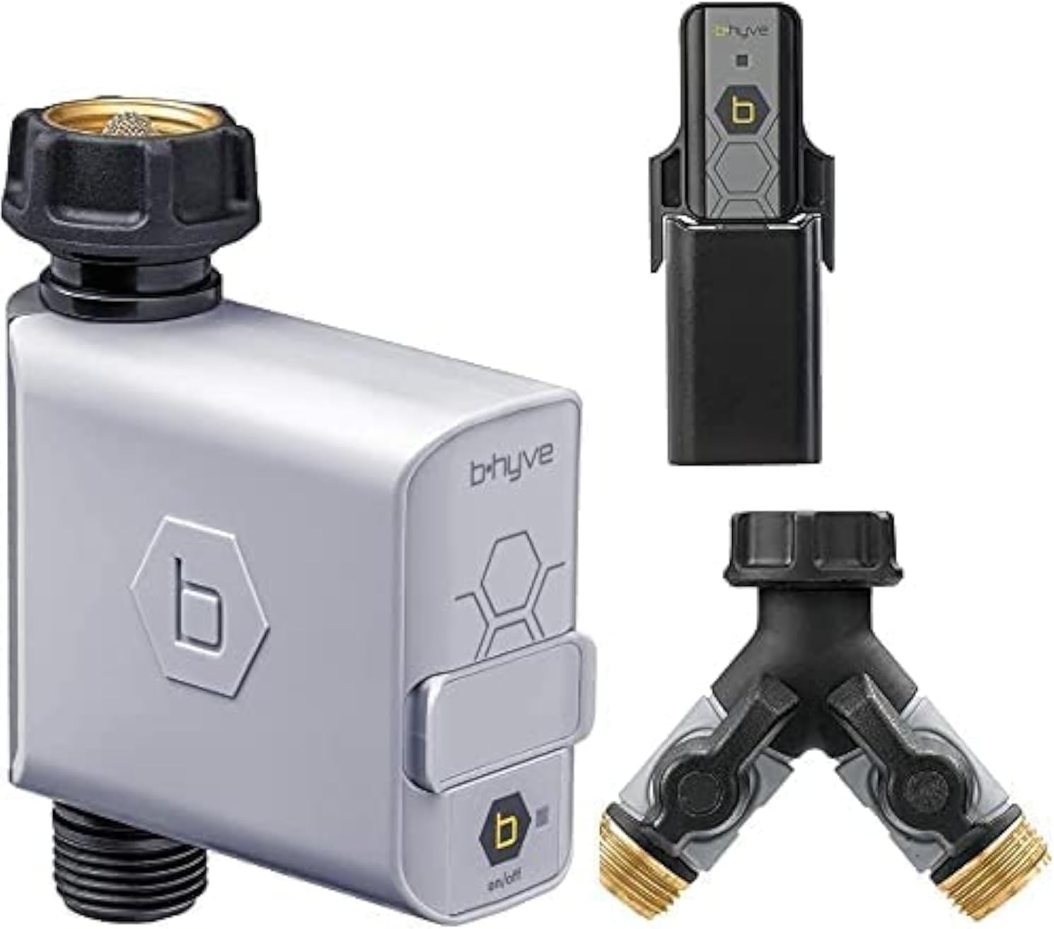 The B-hyve Smart Hose Faucet Timer with Wi-Fi hub gives you complete control over hose faucet watering from your smart device. No more dead plants because you forgot to water them. No more soggy lawns because you forgot to turn the water off. Download the free Android or iOS B-hyve App or use your computer with a Wi-Fi connection to program your timer. The Wi-Fi connection allows you to make changes to your programming from anywhere and allows the timer to receive instant weather updates. With instant updates, the timer will adjust the watering scheduling delivering just the right amount of water to your plants; this avoids wasting water with the added benefit of saving on your water bill. Manual watering is available on the timer so you can water without using your phone. The additional smart valves and manifold allows you to create multiple watering zones in your yard.