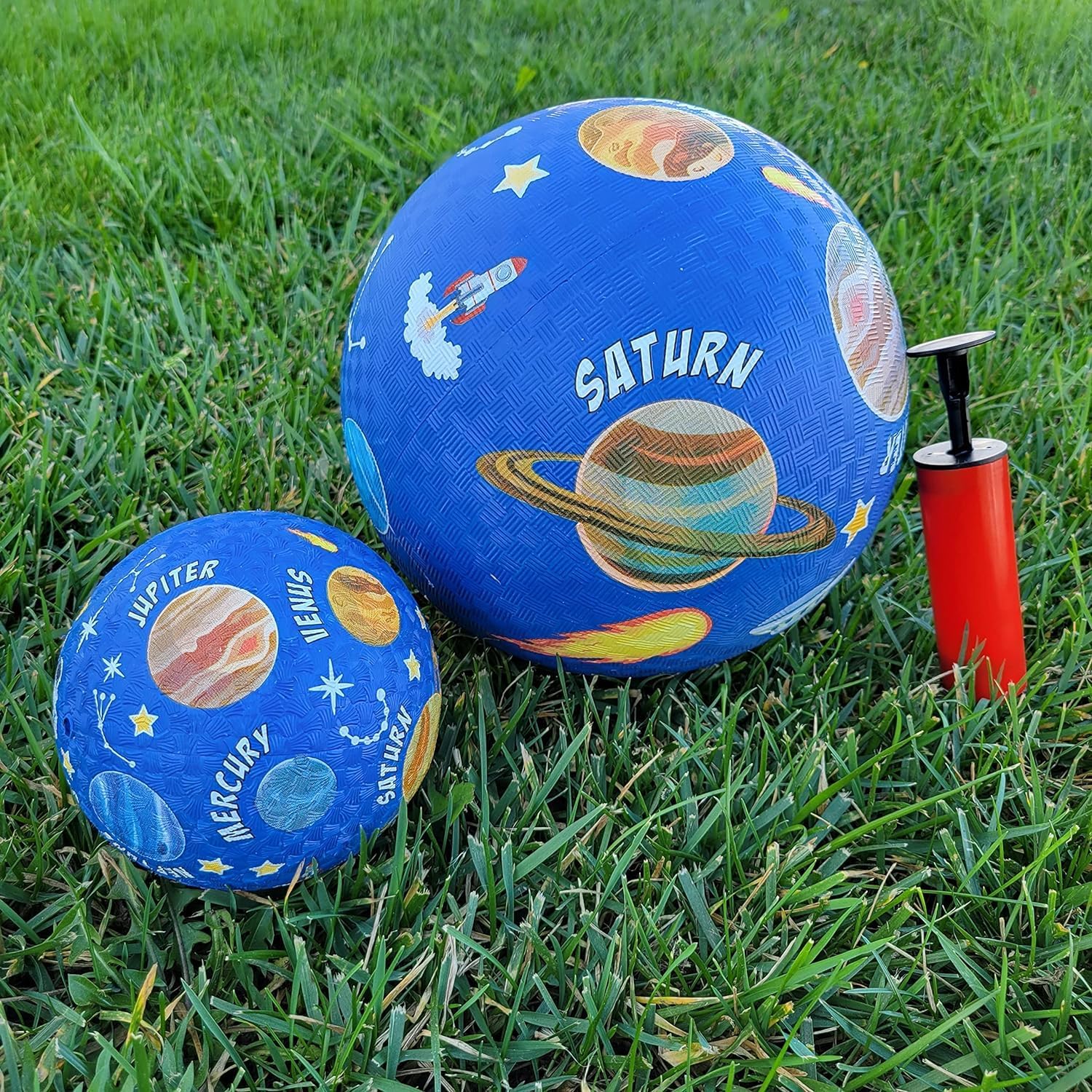 Rubber Playground Balls 8.5 inch and 5 inch Solar System Design. Best Bouncy Dodge Ball for Camps, Picnic, Church and School