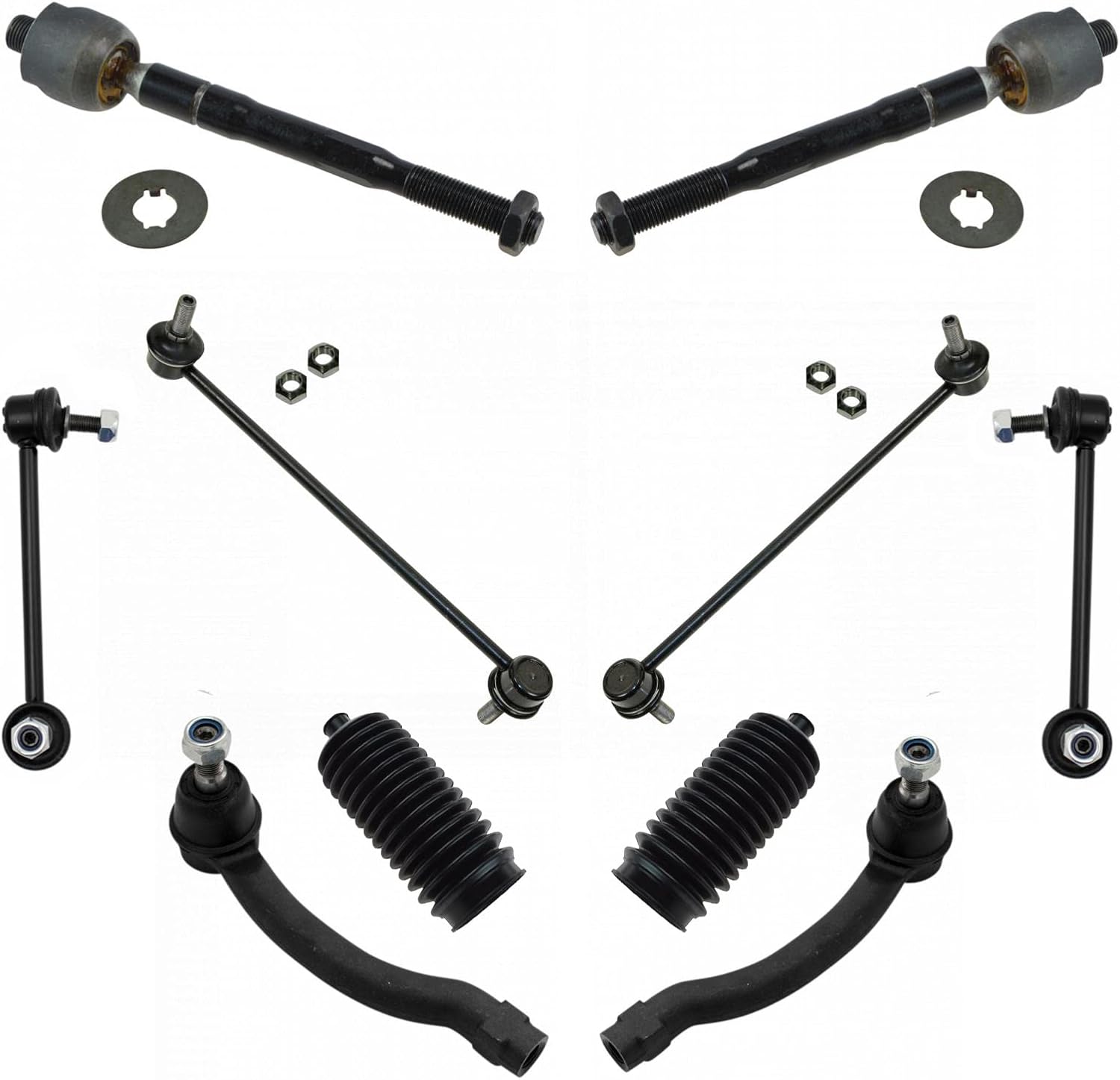 10 Piece Steering & Suspension KitKit Includes(2) Front Inner Tie Rods(2) Front Outer Tie Rods(2) Front Steering Rack & Pinion Bellows(2) Front Sway Bar Links(2) Rear Sway Bar LinksFitmentCompatible with: 2007-13 Acura MDX Front & RearProduct AttributesQuantity: 10 PieceProduct Features Application Specific Design: No modifications necessary Anti-Corrosion Coated: Enhanced surface life Pre-greased: No additional maintenance required Kitted for Restored Performance: Improved road-feel and handlingItem DetailsTRQ suspension kits are manufactured using premium raw materials and coatings for extended service life. Each TRQ suspension component is designed to be a direct, maintenance-free replacement to the stock unit. To extend the life of your steering and suspension components, TRQ recommends replacing components in pairs, sets, or kits. All products are fit and road-tested in our Massachusetts R&D facility to ensure we deliver on our promise of Trusted Reliable Quality.Reference Numbers101-702410170581017059103-291218315187501241K0423831B26514972653037512-42385051320-S0X-C0151320S0XC01517603K00352320STXA0252325STXA0152325STXA02531-18553534S87A0153540STXA0253560STXA02536-0625774038000606.40065644-233890DW-K750124ES800824ES800825EV800578JTS1169JTS856K750124K750750K90440LS13022MK90440MS60621MS60622MS60710MS60834MS60893MS60894SL50511SL50512XLSL59445SL59445XLSL750124SUS06776SUS07990SUS07991SUS07992TC5098VSL50124