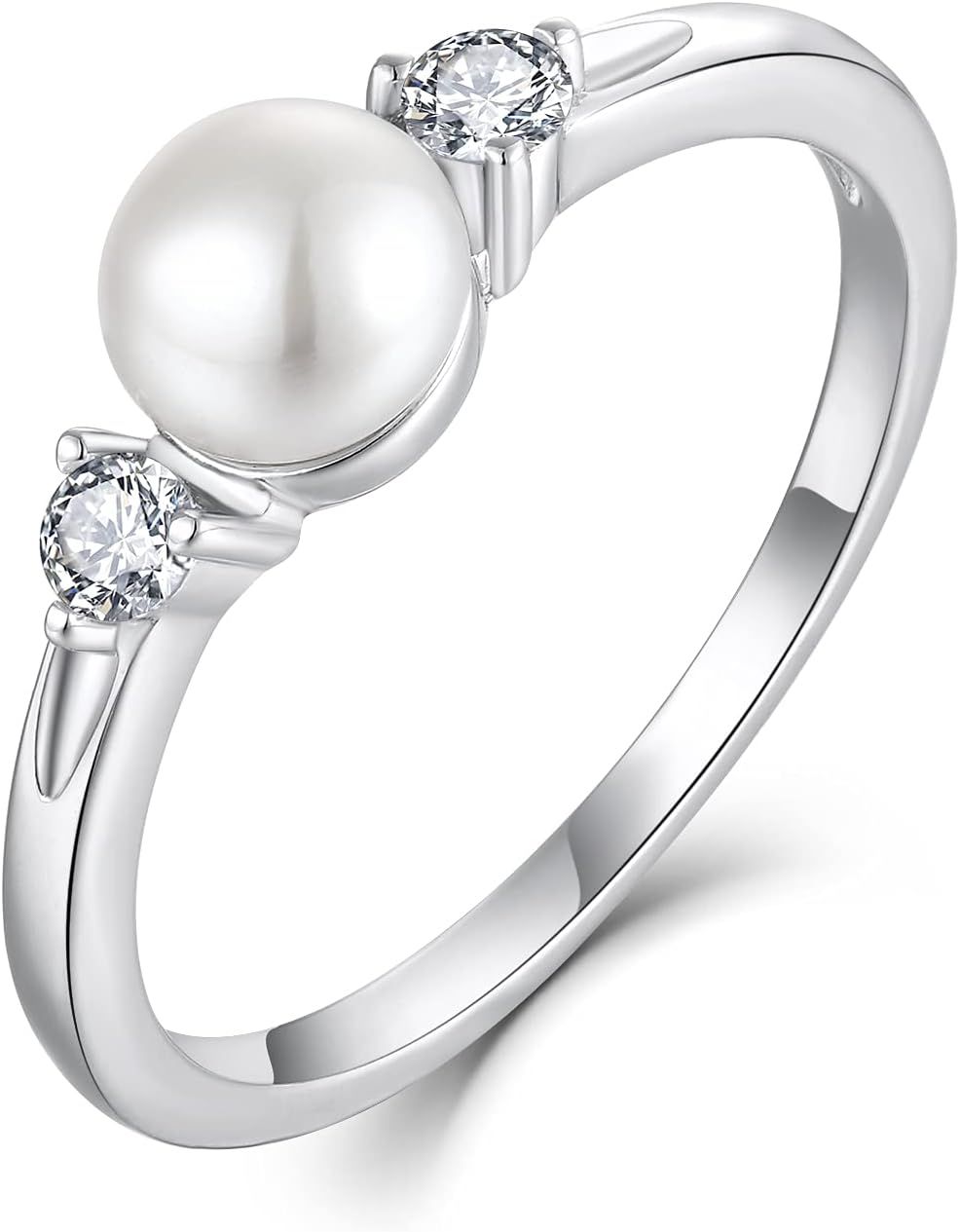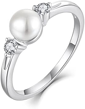JO WISDOM Pearl Ring,925 Sterling Silver Cubic Zirconia Women's Rings with 7mm White Freshwater Cultured Pearl Ring size 5-10