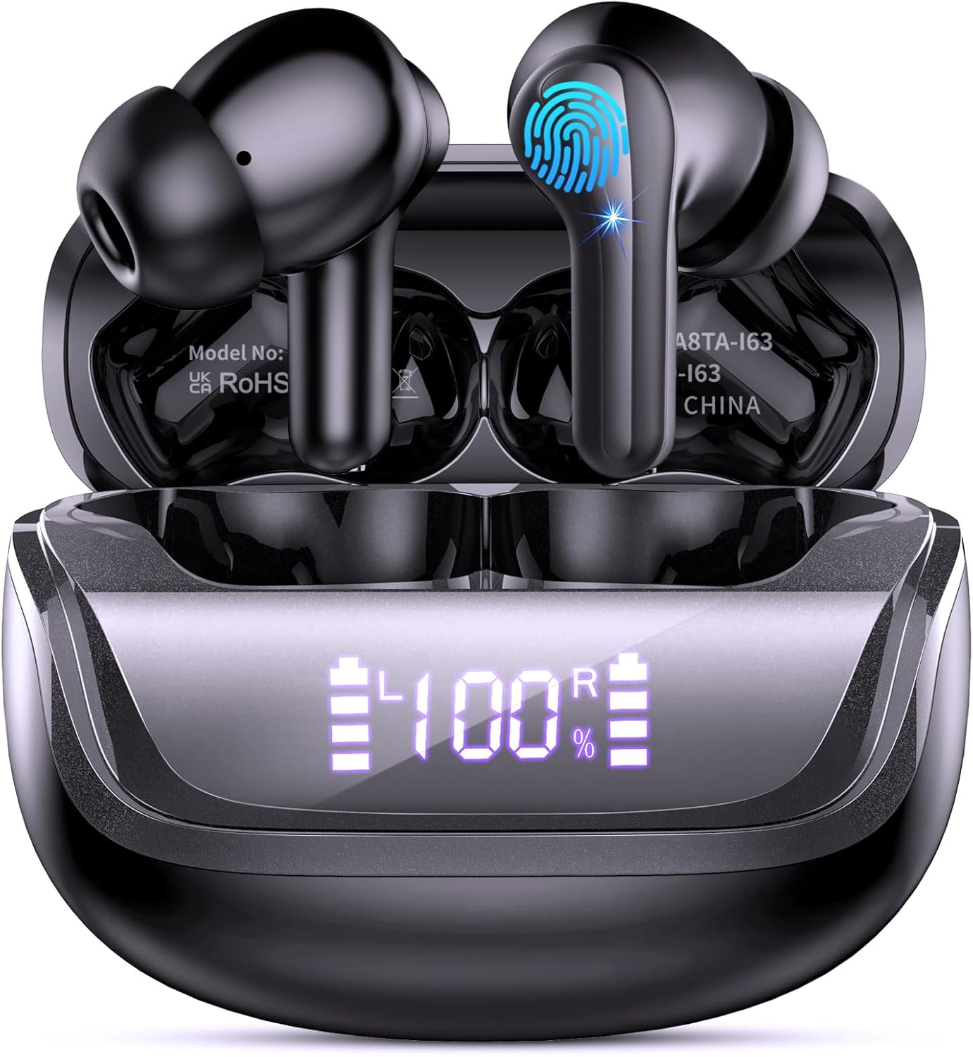 estuche de carga y pantalla LED: la caja de carga con batería incorporada puede proporcionar hasta 40 horas de tiempo de música continua. coloque los auriculares en la caja de carga y se cargarán automáticamente. la caja de carga tiene una pantalla LED que le permite saber cuándo es el tiempo de carga, los auriculares Bluetooth Donerton son ¡tu gran compañero para hacer deporte y viajar!