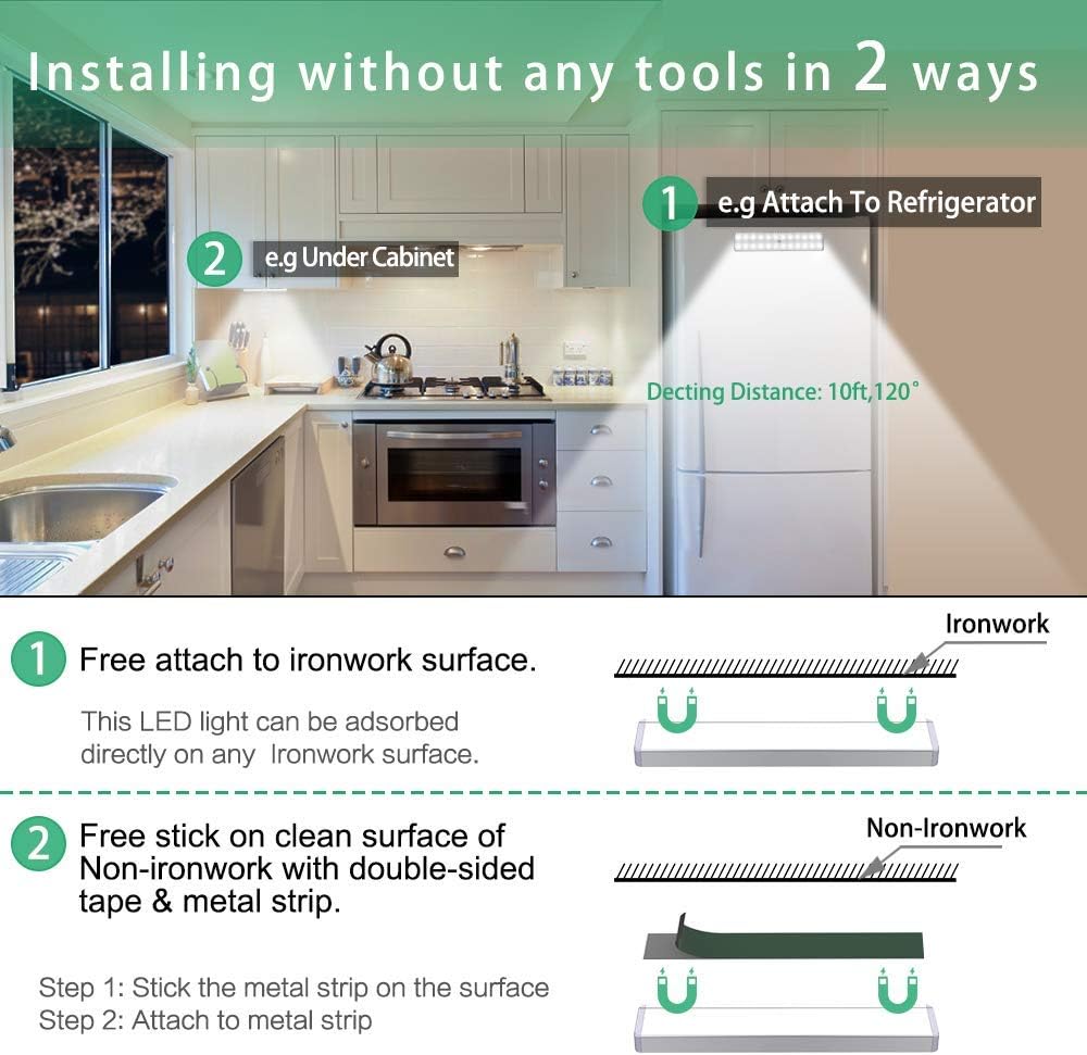 【EASY TO INSTALL】-- Built in strong magnetic, this light can be adsorbed directly on any iron product, OR installed by magnetic strip ( included ), no hard wiring. It’s very easy to install and remove.