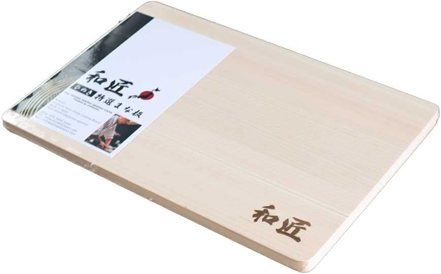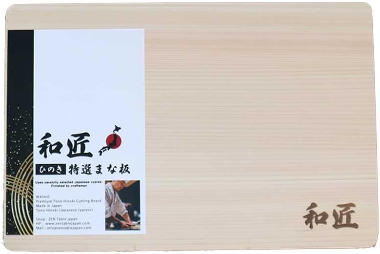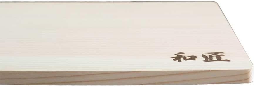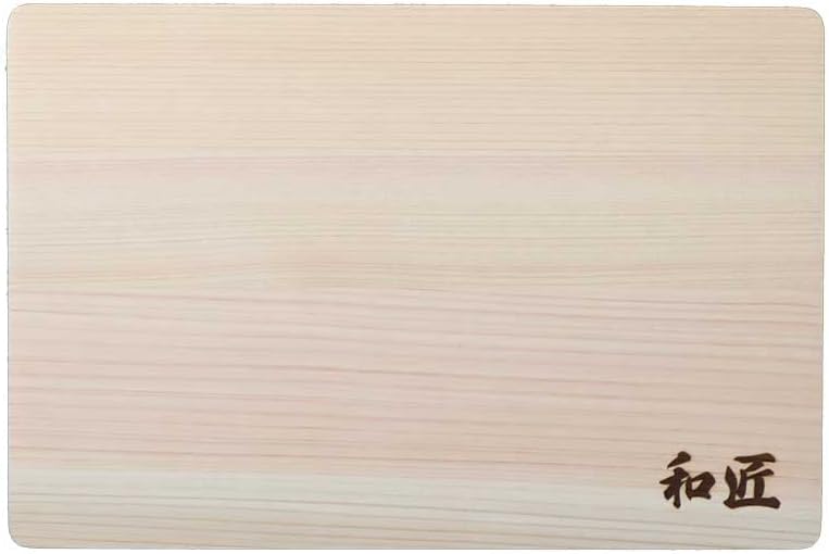 This cutting board uses premium Tono Japanese cypress that's carefully selected. Hinoki has been used as the finest material for cutting boards for a long time. It is highly praised by Sushi chefs. Craftsmen use a smoothing plane for the final touch and sand paper for extra polishing. It creates a unique polished surface without ruining the beautiful wood grain. The cypress bark is gentle on your blade and makes your knife last longer. It has the best relationship with the blade, making it last longer and your hands don't get nearly as tired compared to other materials. Handling Instructions 1. Before Use You may notice some oil and fat contents called resin on the product's surface or shrink wrap. Resin is a component peculiar to conifers and contains hinokitiol. This phenomenon is a result of restraining wood from drying. Rest assured you can use it safely as it has no effect on food hygiene. 2. Every Use Lightly soak it in water before use. The wet surface makes it more difficult to have food odors, stains and black spots. 3. After Use Wash with the grain using a scrubbing brush, wipe it off with a cloth and dry it in the well-ventilated shade. Cautions A dishwasher may be used; however, rinse thoroughly after washing. The use of bleach may damage the wood quality and causes it to have a frayed surface. Rinse thoroughly first with water and soap when cutting fish and meat as the hardened proteins can cause odors. The wooden cutting board may warp over time. When it warps, turn the convex side facing up and place a wet cloth on the cutting board. Put heavy weight (approximately 22 pounds) on the cutting board and leave it there for about half a day to restore it.