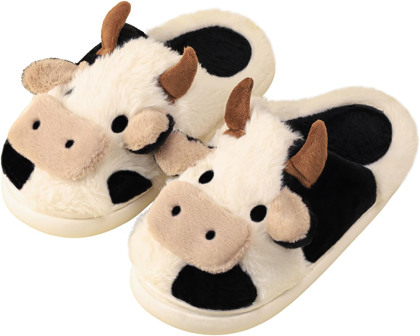 Gaolinci Cartoon Cow Cotton Slippers, Winter Indoor Outdoor Slippers for Women