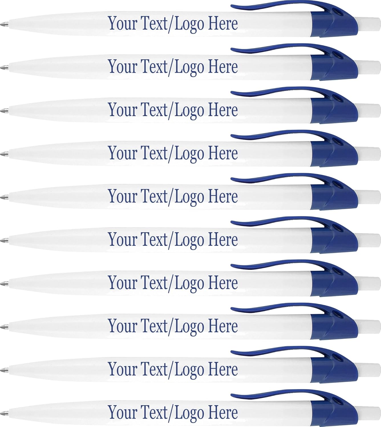 SyPen Personalized Pens With your Custom Logo or Text-500 Pack Bulk-for Businesses, Parties, and Events, Custom Printed Ballpoint Click Pens, Blue Trim Color, Black Ink