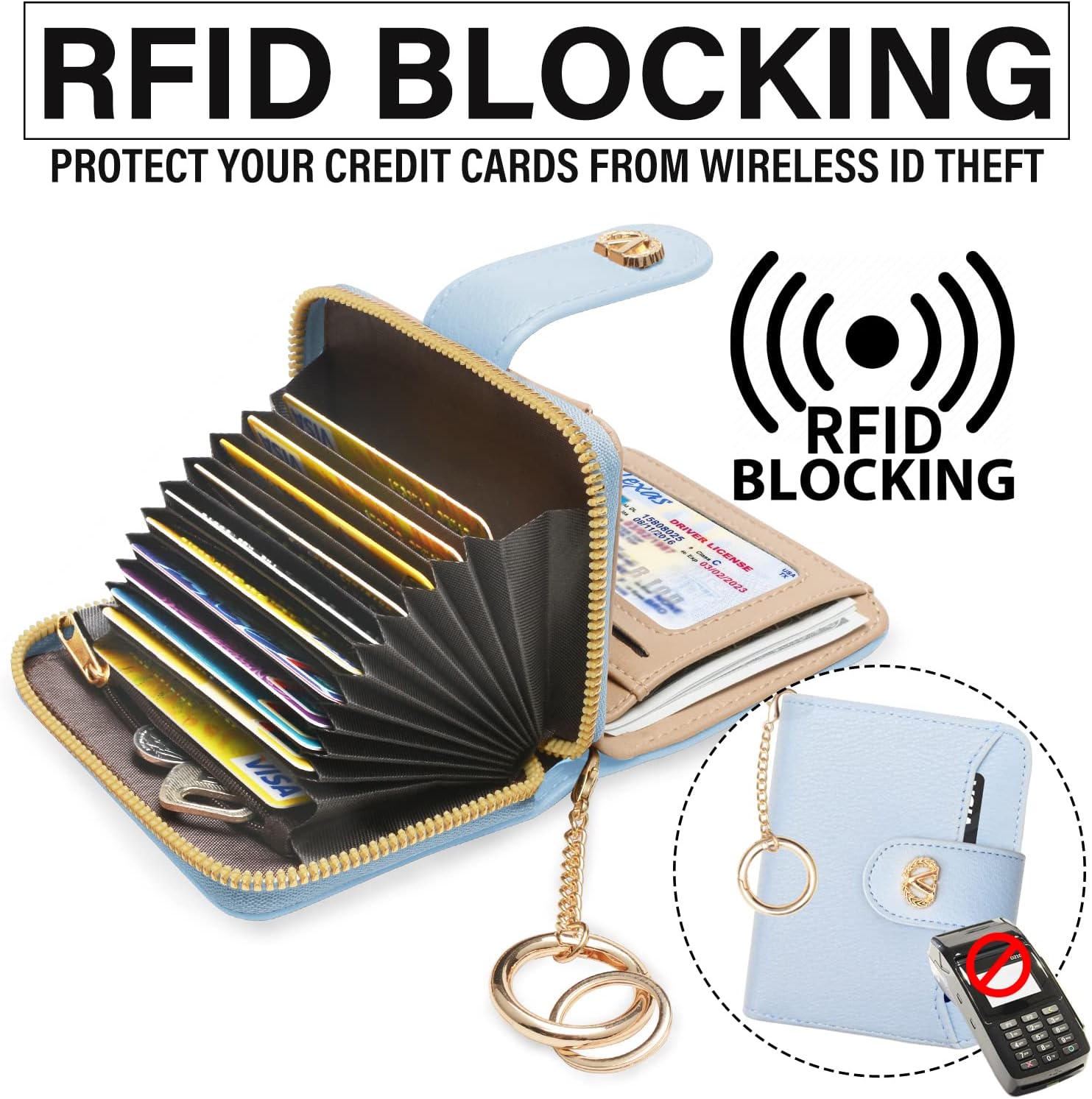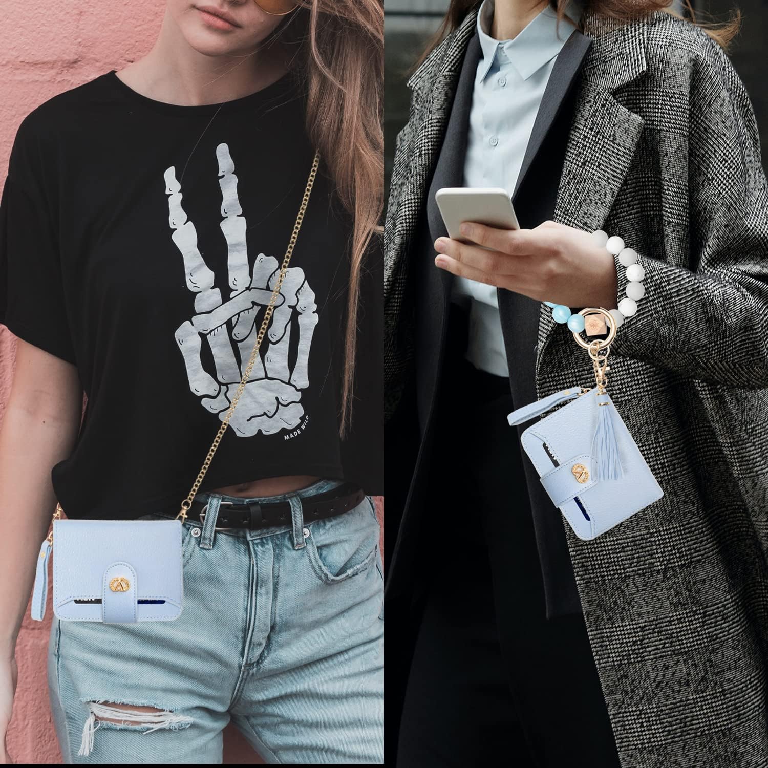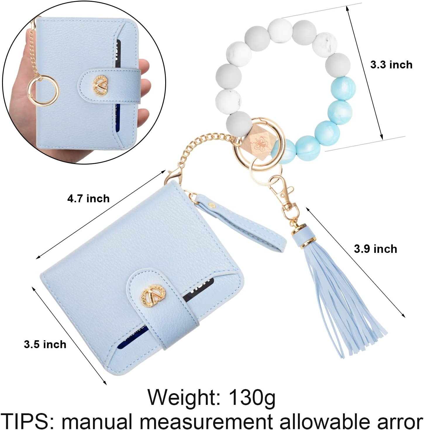 Multi-Purpose Wallet High Capacity Card Holder Zipper Coin Purse with Wristlet Bracelet Keychain Silicone Beaded Bangle Key Ring