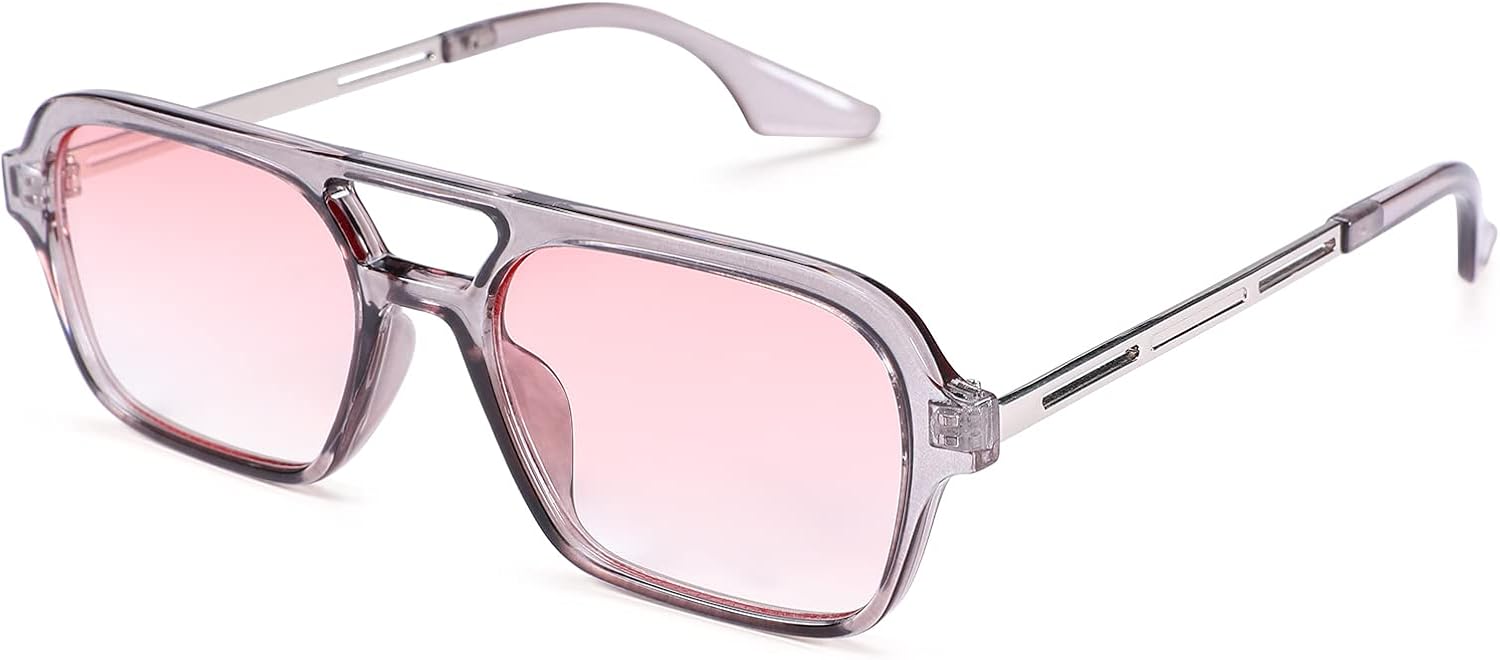 COASION Vintage 70s Flat Aviator Small Frame Sunglasses for Women Men Square Metal Design UV400 Protection Shades