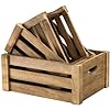 Lawei Set of 3 Wood Nesting Storage Crates with Handle, Rustic Farmhouse Decorative Wooden Crates Distressed Crates Storage Container for Display, Large Vintage Wood Decor Crates Wooden Baskets
