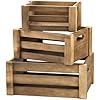 Set of 3 wood crate, Large Crate: 16 x 12 x 6.3 inch, Medium Crate: 14 x 10 x 5.5 inch, Small Crate: 12 x 8 x 4.7 inch. Set of 3 wooden nesting crates are stackable and nest into one another for easy storage. Note: Please confirm the size before purchasing. Due to manual measurement, there may be slight errors