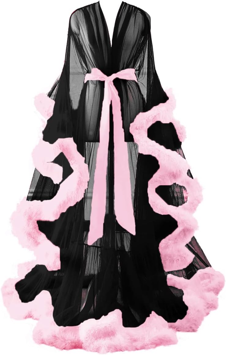 Bata Changuan sexy con plumas, bata larga de tul para sesión de fotos de maternidad, lencería transparente, albornoz, ropa de dormir