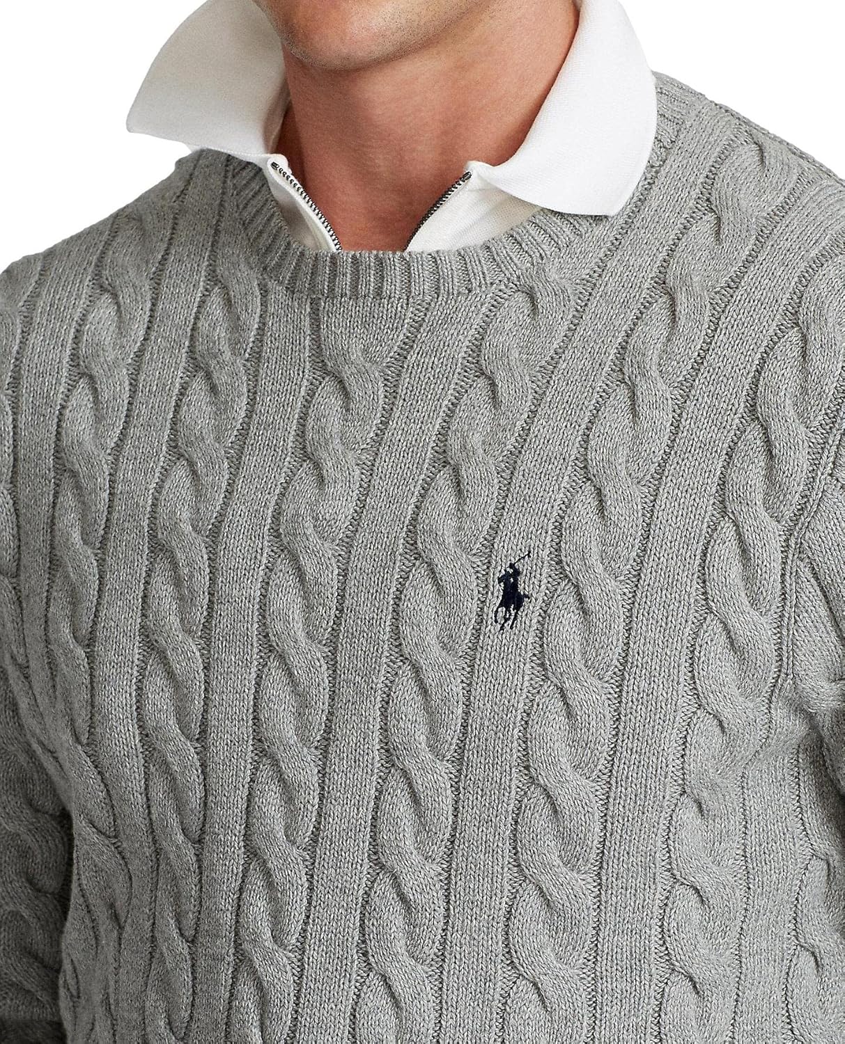 Polo Ralph Lauren Men's Pony Cable Knit Crewneck Sweater (LiteGrey - XXL)