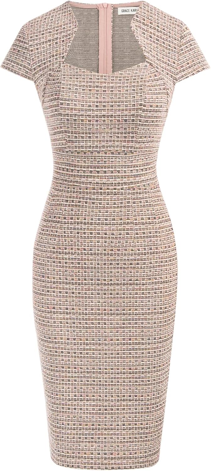 GRACE KARIN Women's Gorgeous Pencil Dress Cap Sleeve Tweed Pencil Dress for Work