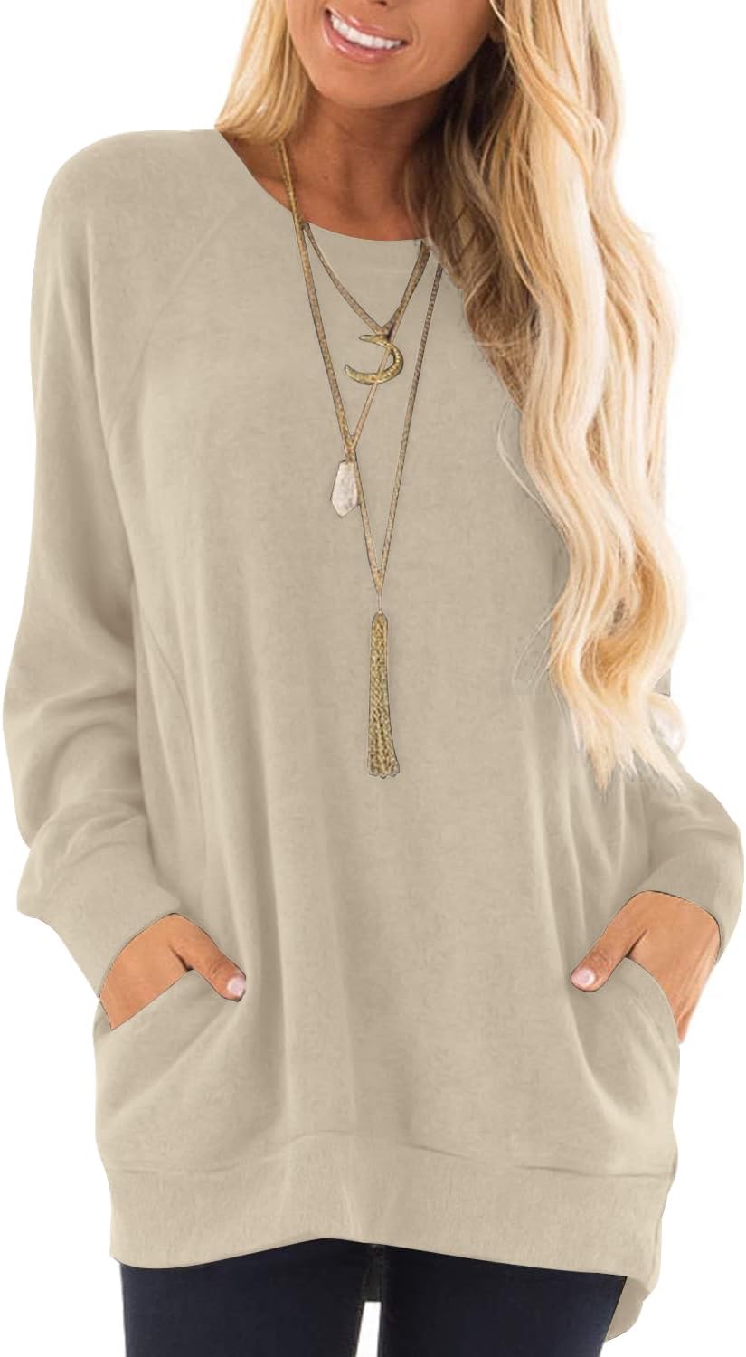 KUOTAI Womens Fall Long Sleeve T-Shirts Casual Tunic Tops for Leggings Loose Soft Blouses with Pocket