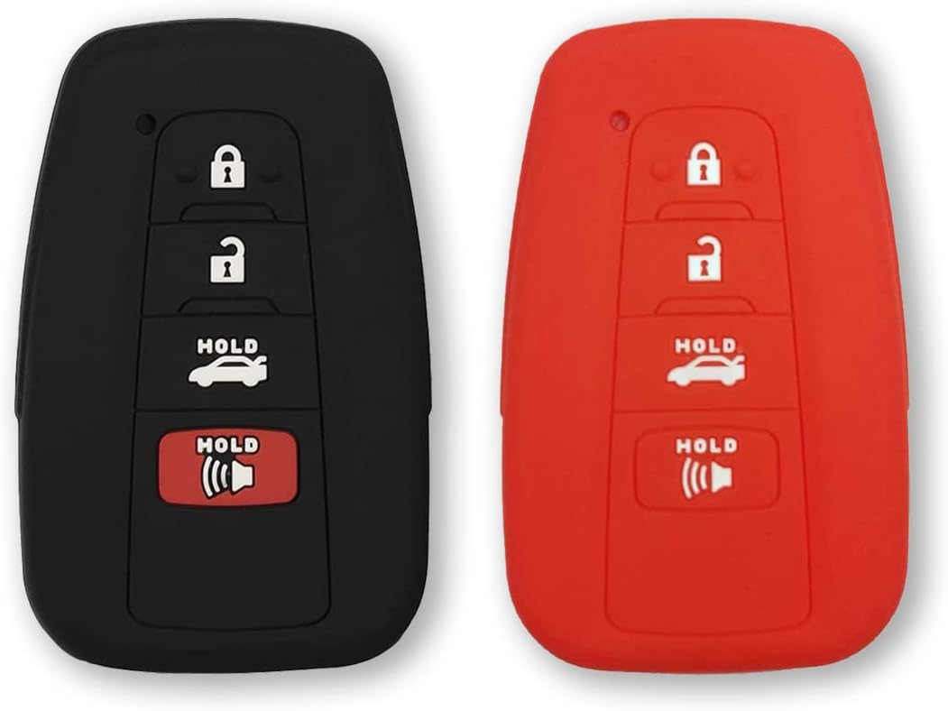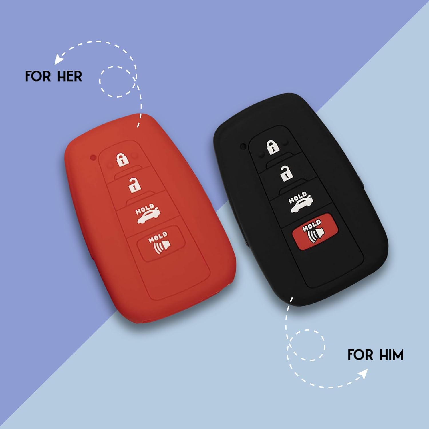 Autobase Silicone Key Fob Cover for Toyota Camry RAV4 Highlander Avalon C-HR Prius Corolla GT86 Smart Key | Car Accessory | Key Protection Case 2 Pcs (Black and Red)