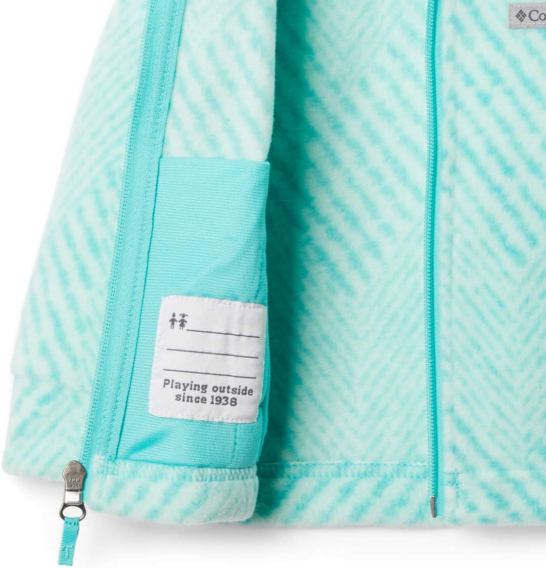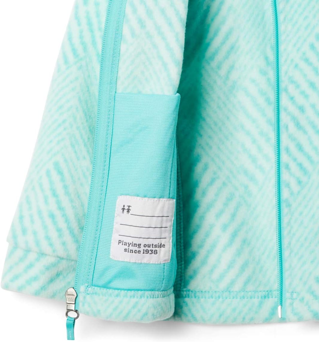 Un clásico actualizado, esta acogedora chaqueta de felpa proporciona la cantidad perfecta de aislamiento de las brisas primaverales y los fríos invernales. Está elaborada con un felpa súper suave de 250g MTR que viene en una variedad de estampados que ella amará. Dos bolsillos con cremallera para las manos son ideales para guardar pequeños objetos y hallazgos. Como un bono adicional, el cuello cálido es lo suficientemente flexible para usarlo hacia arriba o hacia abajo, dependiendo del nivel de calidez deseado. Columbia ofrece esta chaqueta de felpa de talla juvenil en múltiples colores y tallas. Corte Regular.