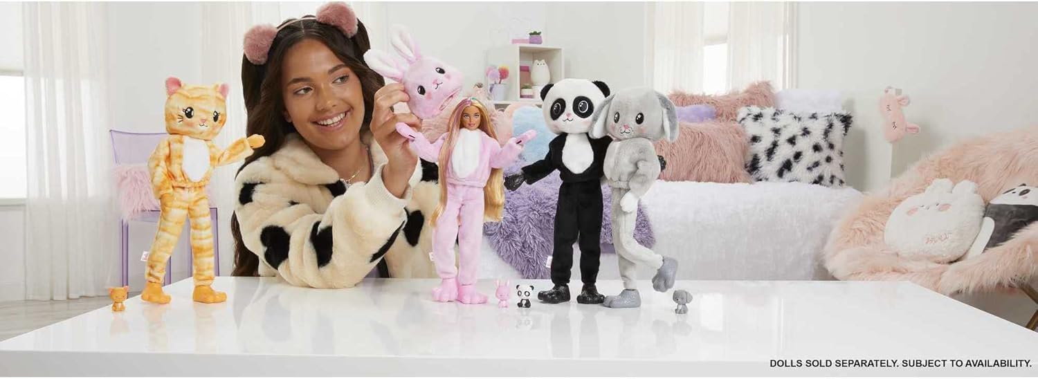 Con 10 sorpresas en un solo paquete, las muñecas Barbie Cutie Reveal ofrecen la más linda experiencia de desempaquetado con suaves amigos animales de peluche y modas, sorpresas y diversión transformadora (cada una vendida por separado, sujeta a disponibilidad).
